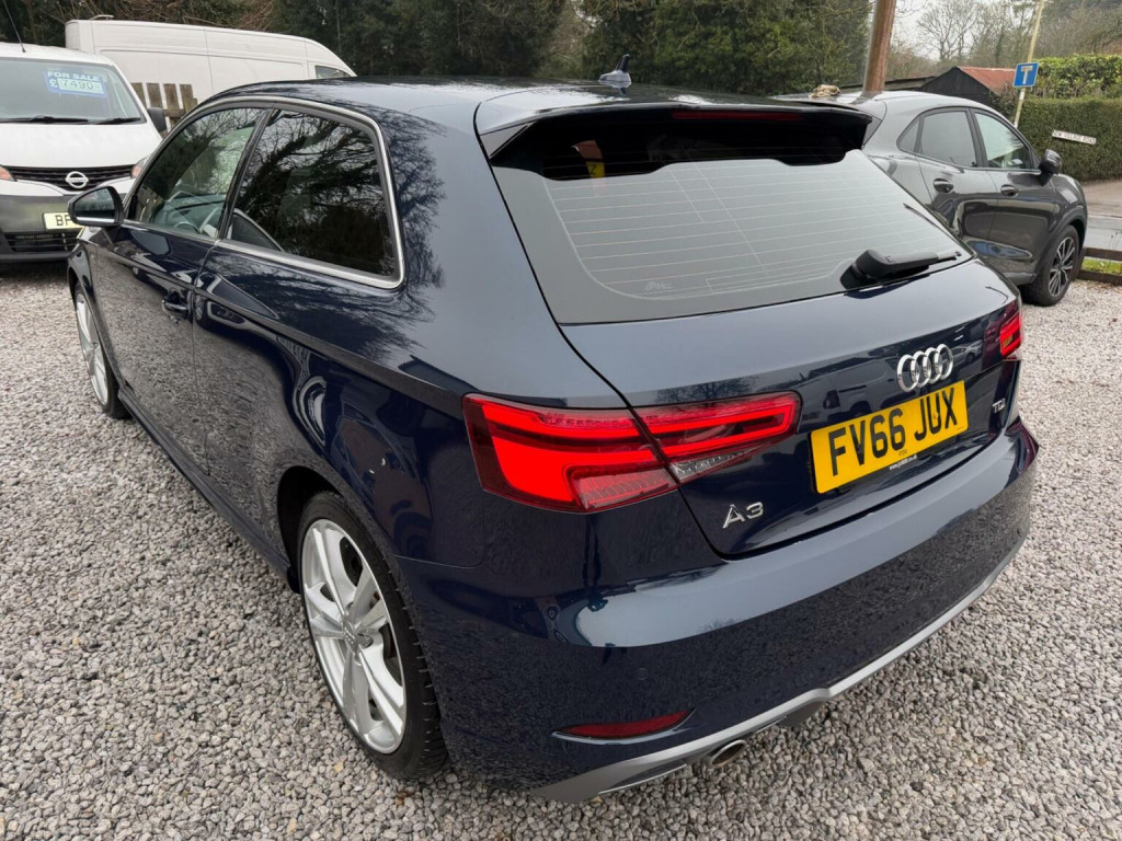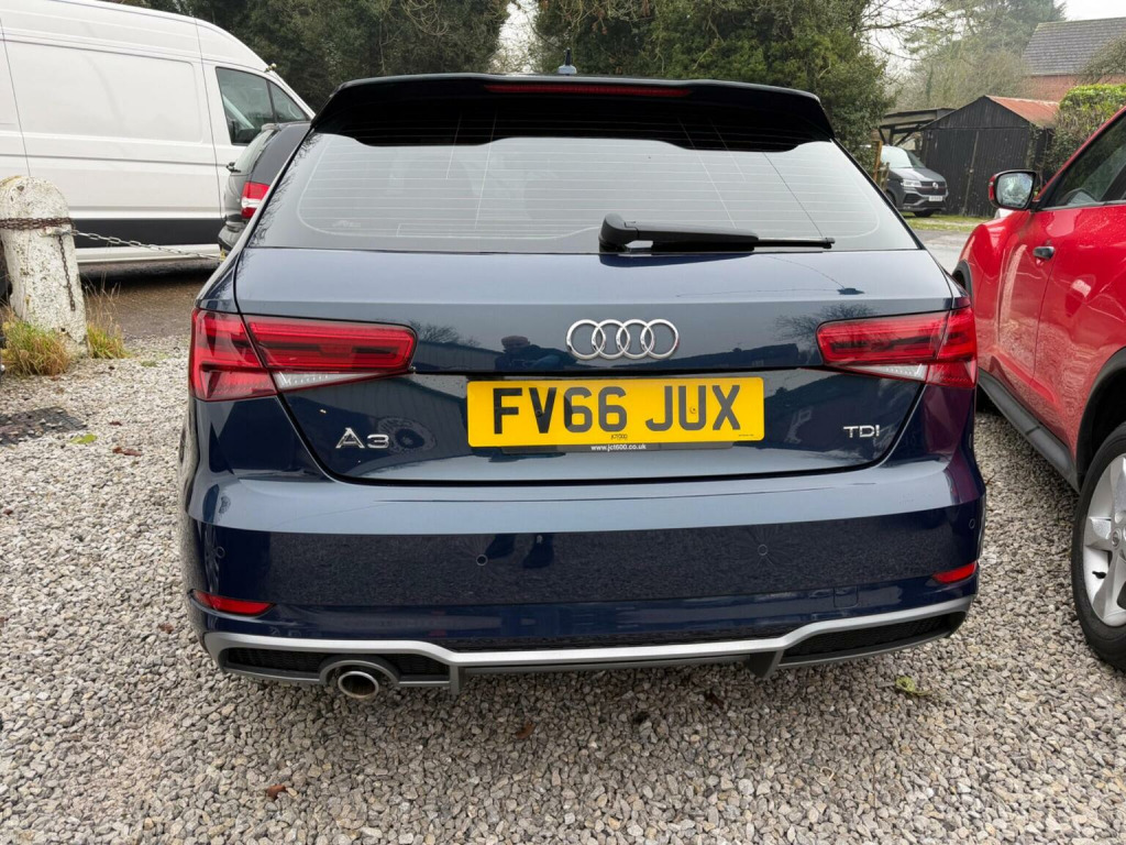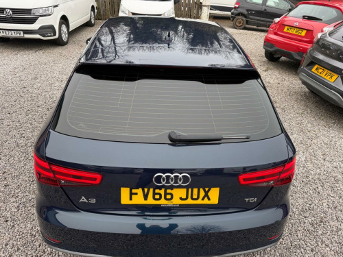 IMMACULATE EXAMPLE. New Timing belt & water pump just fitted. Boasting exceptionally low mileage for its age, and upgraded spec this late 2016 Audi A3 TDI S line presents a superb opportunity. Only 34,000 miles by just one careful lady owner plus Audi dealer demo. Audi dealer digital service history. Stunning, classy dark metallic blue. This Euro 6 compliant vehicle has a clear vehicle history check. It features a responsive 1.6 litre diesel engine and benefits from the sporty S line trim. Notable features include striking LED headlights with dynamic rear indicators, a light and rain sensor for automatic headlight activation, Bluetooth interface for seamless connectivity, bang and olufsen sound system, privacy glass, heated seats, flat bottom steering wheel etc, PROBABLY THE FINEST EXAMPLE YOU WILL FIND. , This Audi A3 stands out with its dual zone electronic climate control, ensuring comfort for all occupants. The large boot space offers practicality for everyday needs and longer journeys. Furthermore, its low insurance group rating indicates that running costs are kept to a minimum, making it an economical choice compared to many other vehicles in its class. Immaculate example with full service history (mainly Audi dealership), 4 recent Michelin tyres. Supplied with 2 keys, new cambelt and service. Px welcome, 3 months extendable warranty included and new cambelt just fitted (saving you £550).