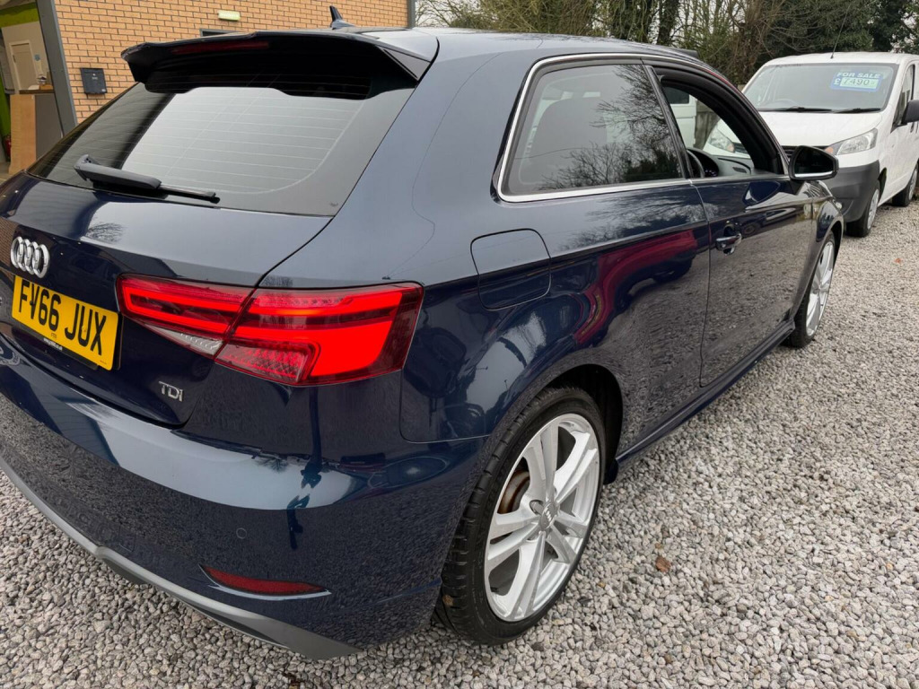 This 2016 Audi A3 1.6 TDI S line Euro 6 (s/s) 3dr Hatchback is currently available for £13,490 with Diesel engine and Manual gearbox. For more information or to arrange a viewing, click here to send us an email using form below.