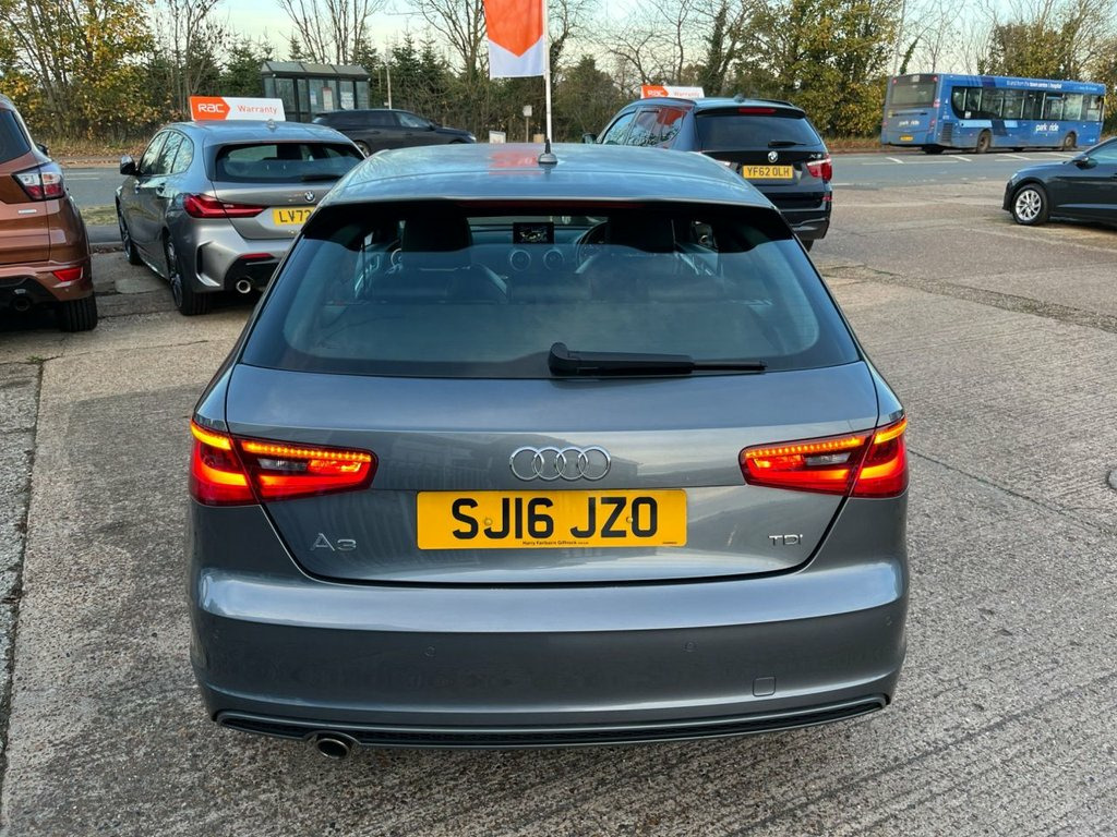 This 2016 Audi A3 TDI S line offers strong value with low mileage for its age, having covered just 75,580 miles. It has had two former owners and will come with 12 months MOT on purchase, a clear vehicle history check and a three month RAC warranty for added reassurance. A service was completed on 11 January 2025 at 65,495 miles, and we will carry out a further service before delivery. This Euro 6 compliant 1.6 litre diesel engine provides a smooth and efficient drive, reinforced by the S line styling and 18 inch alloy wheels. Inside, the A3 delivers comfort and quality, featuring heated front seats trimmed in Fine Nappa leather with S line embossing, dual zone electronic climate control and a Bluetooth interface for easy phone connectivity. The Audi Music Interface and satellite navigation with full European map data add further convenience. The Bi Xenon Plus headlights enhance visibility, supported by LED daytime running lights and heated, electrically folding door mirrors. This model benefits from a low insurance group, helping keep running costs more manageable compared to similar vehicles. Combining its efficient diesel engine, desirable specification and strong presentation, this Audi A3 TDI S line stands out as a well equipped and attractive choice. Finance options are available, part exchanges are welcomed and extended warranties can be arranged. Fine Nappa Leather - S Line Embossing - , Cruise Control, Door Mirrors - Heated-Electrically Adjus, Heated Front Seats, Monsoon Grey, 12V Power Socket - Centre Console, 12V Power Socket - Rear, 2 x SDXC Card Readers, ABS - Anti-Lock Braking System, AMI - Audi Music Interface, ASR - Anti Slip Regulation, Adaptive Brake Lights, Airbags - Driver, Airbags - Drivers Knee, Airbags - Front Passenger, Airbags - Front Side, Airbags - Head Level Side For Front and , Alarm - Thatcham Category 1, Aluminium Interior Elements, Anti Theft Locking Wheel Bolts, Audi Drive Select, Audio Output - 80 Watts, Car Jack, Cloth Headlining in Black, Coat Hooks - B Pillar - Both Sides, Colour Drivers Information Syste