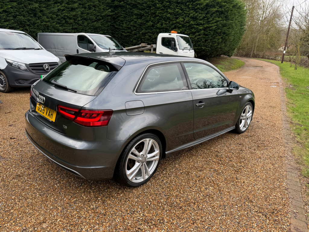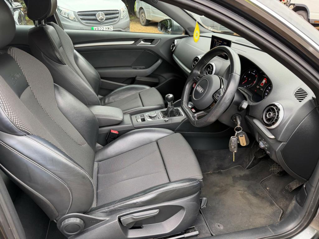 Very rare 1 owner example with FSH!! Find another one!! Just has full wheel refurb. Just passed an advisory free MOT. 1 owner low TAX high MPG and ULEZ car with full and comprehensive service history. 1 owner car with FSH. Very well cared for example in superb condition .This 2015 Audi A3 1.6 TDI S line Hatchback with a manual transmission and Euro 6 diesel engine is a stylish and efficient vehicle with only 58000 miles on the clock. This 3-door hatchback provides 5 seats and is ULEZ compliant, making it an ideal choice for city driving. The MOT is valid until 26/03/2026, offering peace of mind for the next few years. The car comes equipped with 12V Power Sockets in the centre console and rear, as well as an AMI - Audi Music Interface and DAB Digital Radio. The 5.8-inch colour display screen provides easy access to the car's entertainment and information features. With its sleek design and reliable performance, this Audi A3 is a fantastic choice for anyone in the market for a hatchback.Topgear car sales has developed into an appointment only business along side relocation to our new location near West Malling in Kent. We remain a fully operation business and strive to continue to providing the best value vehicles with the best customer care possible. Please feel free to contact us anytime for any help you may require in purchasing your next vehicle.FULL DEALER FACILITIES** PART EXCHANGE WELCOME**FINANCE AVAILABLE FROM 13.9% APR (SUBJECT TO STATUS) For all customers arranging vehicle finance through a 3rd party finance brokers an administration fee will apply. We operate by appointment only and as such would ask that you make phone/email contact in the first instance. v power socket - centre console, 12v power socket - rear, ami - audi music interface, dab digital radio, display screen colour - 5.8in, mmi radio, mobile telephone preparation - bluetooth interface, preparation for sd card-based navigation system, sdhc card reader x2, speakers x8, usb connection, 18in alloy wheels - 5-parallel spoke design partly polished, anti theft locking wheel bolts, chrome-plated exhaust tailpipe trim, door mirrors - body coloured with integrated led indicators, door mirrors - electrically adjustable and heated, electric windows - front, exhaust tailpipe - twin, fog lights - high gloss black surrounds, heated rear windscreen, heated windscreen washer jets, led rear indicators, model and engine technology badges at rear, radiator grille - high gloss black, s line badges on front wings, s line body styling, s line design front and rear bumpers side grilles and dffusers in platinum grey, s line design front bumper-rear diffuser-side sills and roof spoiler, space saver spare wheel, window surrounds - aluminium, abs - anti-lock braking system, asr - anti slip regulation, active bonnet, adaptive brake lights, airbags - driver, airbags - drivers knee, airbags - front passenger, airbags - front side, airbags - head level side for front and rear, alarm - thatcham category 1, ebd - electronic brakeforce distribution, esp - electronic stability programme, electromechanical parking brake, first aid kit, front passenger airbag deactivation switch, hydraulic brake assist, isofix child seat mounting for front passenger and rear outer seats, multi collision brake assist, remote central locking with 2 fold away keys, seat belt reminder for all seats, secondary collision brake assist, warning triangle, air vent sleeves - aluminium look, aluminium interior elements, car jack, cloth headlining in black, coat hooks - b pillar - both sides, cup holders - rear x2, cup holders - x2 in centre console, door sill trims with s line logo, dual-zone electronic climate control, front centre armrest, front sports seats, front and rear floor mats, gear knob - perforated leather, height adjustable boot floor, illuminated vanity mirrors, inlays - matt brushed aluminium, interior lighting, luggage compartment - lashing points x4, luggage compartment - side net, rear parcel shelf removable, seats - convenience entry - enhanced front folding function, seats - front height adjustment, seats - split folding rear - 60-40, smoking package, steering wheel - height and reach adjustable, steering wheel - multi-function, steering wheel - multifunction - flat bottomed, storage compartment under rear seat, storage compartments in the door side trims-centre console-under front passenger seat, storage net in front passenger footwell and front seat backrests, storage and luggage package, sun visors - with covered vanity mirrors, tool kit, audi drive select, colour drivers information system - dis, edl - electronic differential lock, electromechanical power steering, rest recommendation system, sport suspension, tyre pressure monitoring system, voice control - navigation, washer fluid level indicator, daytime running lights, front fog lights, headlights - automatic dynamic range control, headlights - bi-xenon plus, headlights washers, led daytime running lights, led rear lights