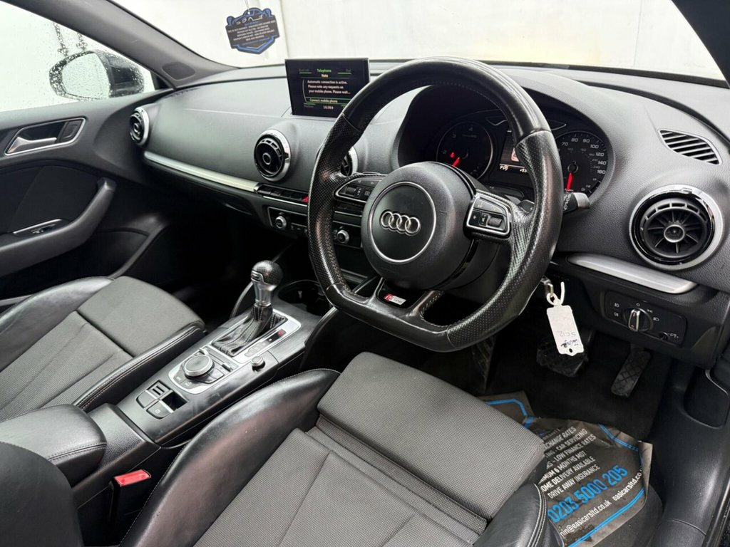 An excellent example of the stylish and premium Audi A3 1.6 TDI S line S Tronic, finished in a sleek black exterior. This sporty hatchback delivers efficient diesel performance, enhanced by start/stop technology and the smooth S Tronic automatic gearbox for effortless driving. With its S line styling, high-quality interior, and refined driving experience, it?s an ideal choice for drivers seeking luxury, performance, and efficiency in a well-presented Euro 6 vehicle. Key Features Include: Rear parking sensors Bluetooth connectivity Air conditioning Alloy wheels Electric windows 2 keys This vehicle comes with 5 doors, 5 seats, and has covered 121,329 miles. It was first registered in 2014, runs on Diesel, and features an Automatic gearbox. The car is ULEZ compliant, HPI clear, and comes with a valid MOT until February 2027. Service history included. What?s Included: 1 year of free AA breakdown cover Free 90-day warranty Part exchange welcome Flexible finance options Extended warranties, drive away insurances, and servicing available at additional costs We also offer nationwide delivery at an additional cost?have the car delivered directly to your door, or visit our dealership to view and collect at your convenience. Visit or Contact Us - We?re open 7 days a week Unit E4, Middlesex Business Centre, Bridge Road, Southall, London, UB2 4AB Contact us today to arrange a viewing, test drive, or to discuss your finance options. 12V Power Socket - Centre Console, 12V Power Socket - Rear, 18in Alloy Wheels - 5-Parallel Spoke Des, ABS - Anti-Lock Braking System, AMI - Audi Music Interface, ASR - Anti Slip Regulation, Active Bonnet, Adaptive Brake Lights, Air Vent Sleeves - Aluminium Look, Airbags - Driver, Airbags - Drivers Knee, Airbags - Front Passenger, Airbags - Front Side, Airbags - Head Level Side For Front and , Alarm - Thatcham Category 1, Aluminium Interior Elements, Anti Theft Locking Wheel Bolts, Audi Drive Select, Car Jack, Chrome-Plated Exhaust Tailpipe Trim, Cloth Headlining in Black, Coat Hooks - B Pillar - Both Sides, Colour Drivers Information System - DIS, Cup Holders - Rear x2, Cup Holders - x2 in C