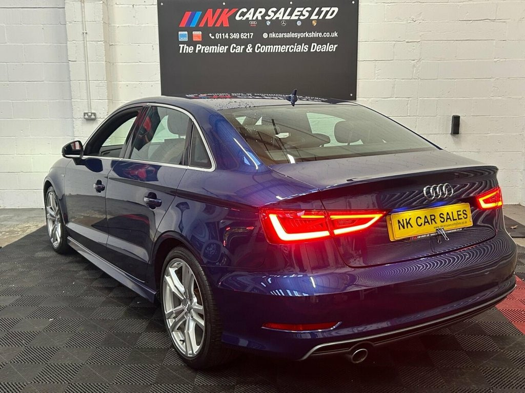2015 AUDI A3 1.6 TDI S line Saloon 4dr is offered to you for sale in Sheffield, South Yorkshire, finished in blue this AUDI A3 1.6 TDI S line Saloon 4dr is one of many handpicked used cars that used car dealer, NK Car Sales, Sheffield, South Yorkshire have available for sale. We are a family-owned company that prides itself on the quality of vehicles and all of them are carefully chosen, handpicked examples that are always HPI Clear for your peace of mind. We have an indoor showroom where you can view any potential purchase in total comfort and away from the elements. We offer all the usual used Car Dealer facilities such as Low-rate finance and extended warranties and operate a no-pressure environment where you can relax and enjoy good old-fashioned service with a smile. 12V Power Socket - Centre Console, 12V Power Socket - Luggage Compartment, 12V Power Socket - Rear, 18in Alloy Wheels - 5-Parallel Spoke Des, 50 Station Memory with Dynamic Station L, ABS - Anti-Lock Braking System, Active Bonnet, Adaptive Brake Lights, Air Vent Sleeves - Aluminium Look, Airbags - Driver, Airbags - Drivers Knee, Airbags - Front Passenger, Airbags - Front Side, Airbags - Head Level Side For Front and , Alarm - Thatcham Category 1, Aluminium Interior Elements, AMI - Audi Music Interface, Anti Theft Locking Wheel Bolts, ASR - Anti Slip Regulation, Audi Drive Select, Bluetooth Audio Streaming, Brake Lights - LED, Bumpers - S line Front, Car Jack, Child Locks - Manual, Chrome-Pla