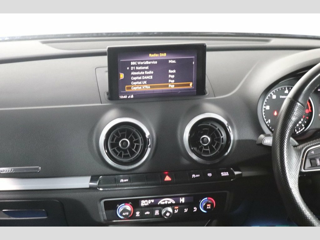 This well maintained Audi A3 S Line Sportback finished in Monsoon Grey looks fantastic complemented by 18 inch Alloy Wheels, LED Headlights, Aluminium Roof Rails and S Line Body Styling. Find your way with integrated SATELLITE NAVIGATION with Pop-Up LCD Display. Keep connected to with your PHONE'S APPS through APPLE CARPLAY and ANDROID AUTO. Park in ease with REAR PARKING SENSORS. Listen to your music through DAB Digital Radio. Keep connected with BLUETOOTH Phone System. Comfortable to drive with CRUISE CONTROL and Dual-Zone CLIMATE CONTROLLED AIR CONDITIONING. Sit in luxury with 1/2 LEATHER Upholstery with S-Line Embossed Logo. Well equipped with Auto Headlights and Rain-Activated Wipers. Also fitted with ISOFIX seats, Multifunctional Flat Bottomed Steering Wheel, USB ports, Audi Drive Select, Immobiliser, Alarm and Remote Door Locking. Buy in confidence with SERVICE HISTORY with 6 x Documented Services. MMI Navigation - SD Card Based, Audi Smartphone Interface, Rear Parking Sensors, Bluetooth Interface, DAB Digital Radio, Cruise Control, Dual-Zone Electronic Climate Control, Sequence Cloth-Leather - S Embossed Spor, LED Headlights with LED Rear Lights and , S Line Design Body Styling, Aluminium Roof Rails, 18in Alloy Wheels - 5-Parallel Spoke Des, Monsoon Grey, Light and Rain Sensor, Steering Wheel - 3-Spoke Leather-Multifu, 2 x USB Charging Ports and 1 x AUX-IN, ISOFIX Child Seat Mounting and Top Tethe, Audi Drive Select, Immobiliser, Anti-Theft Alarm, 6-Airbag System with Knee Airbag for Dri, 8 Passive Speakers, Aluminium Interior Elements, Aluminium Window Trims, Anti Theft Locking Wheel