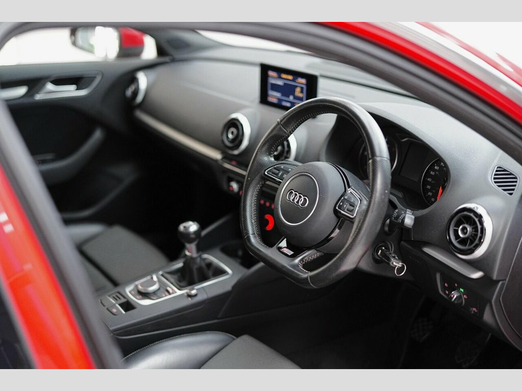 Brilliant Red A3 S Line - Gloss Black 18" S Line Alloys, Rear Parking Sensors, Xenon Headlights with LED DRL's, DAB Digital Radio, Bluetooth, AUX / USB, Media Interface, Audi Drive Select, Climate Control AC & Many More Fitted Features. Phone Lines Open 7 Days a Week. Free Local Deliveries on all Seen & Purchased Vehicles. Full Video Presentations Available on all Cars. Full Warranties available up to 2 Years with Zero Excess at Trade Cost. Low Rate PCP & HP Finance Available on Most Cars Up to 10 Years Old - Can Assist with Part Exchange. We Are FCA Regulated with Indoor Viewing Available. All Vehicles HPI Clear. We aim to offer the highest market part exchange value -------------- Available Now this Audi A3 S Line Diesel Manual has covered 93k Miles in Brilliant Red with Half Leather S Line Interior. Documented Service History & Freshly Serviced for Sale. All Vehicles Subject to Full Health Check and/or Fresh MOT Before or at Point of Sale - LOW RATE FINANCE AVAILABLE TERMS APPLY // Consumer Credit Licence Number: 793202 // Any Further Questions Relating to this Car Please Call 0161 641 0078 or 07974600500 12V Power Socket - Centre Console, 12V Power Socket - Rear, 18in Alloy Wheels - 5-Parallel Spoke Des, ABS - Anti-Lock Braking System, AMI - Audi Music Interface, ASR - Anti Slip Regulation, Active Bonnet, Adaptive Brake Lights, Air Vent Sleeves - Aluminium Look, Airbags - Driver, Airbags - Drivers Knee, Airbags - Front Passenger, Airbags - Front Side, Airbags - Head Level Side For Front and , Alarm - Thatcham Category 1, Aluminium Interior Elements, Anti Theft Locking Wheel Bolts, Audi Drive Select, Car Jack, Chrome-Plated Exhaust Tailpipe Trim, Cloth Headlining in Black, Coat Hooks - B Pillar - Both Sides, Colour Drivers Information System - DIS, Cup Holders - Rear x2, Cup Holders - x2 in C