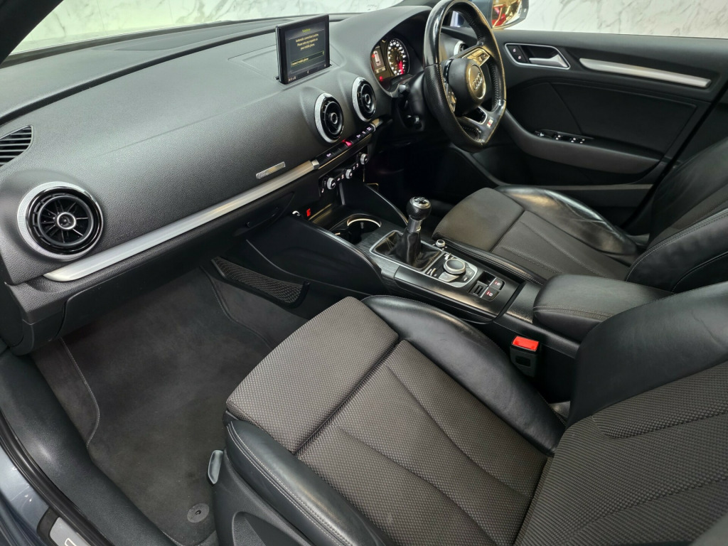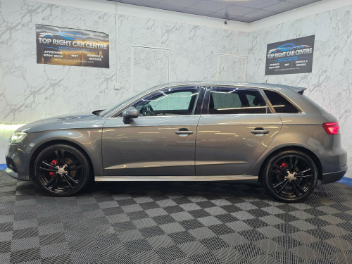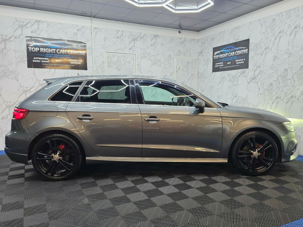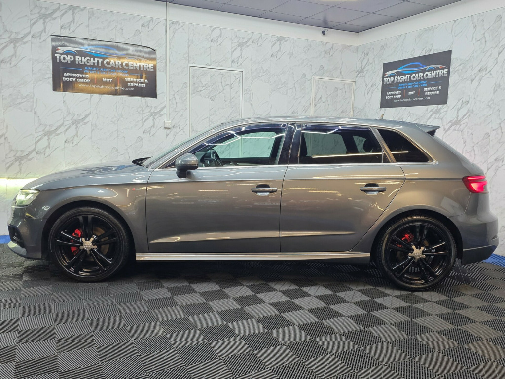*** NIL DEPOSIT FINANCE AVAILABLE *** ***HPI CLEAR***6 MONTHS WARRANTY AND BREAKDOWN COVER WITH THIS CAR.Low 20 pounds road tax.FULL SERVICE HISTORY. MOT 11 NOV 2026. We just done the fresh service.This stunning Audi A3 has been sourced directly from its Previous Private Owner. Every now and again, a car comes into stock at Top Right Car Centre, that you cannot help but fall in love with.Top Spec S line Sportback has massive centre screen SATNAV, part leather interior with heated seats, driving modes, privacy glass, parking sensors, all electric windows, auto folding electric side mirrors, daytime running led lights, digital dual climate control, cruise control.Clean Car in Grey colour. Great comfortable family car. Well maintained body work and interior. Bullet fast response. Checked by our engineers. Professionally detailed. Good reliable runner. Price checked. We've just completed a full pre delivery inspection on the car to give you complete piece of mind. 2 central locking keys. Smooth gear box. Clean Alloy wheels. Excellent condition tyres. Spare wheel. Multimedia has Bluetooth DAB RADIO mp3 usb. Run with no fault strong reliable engine. Good fuel economy. First to see will buy it this well looked after car. p/x welcome. We do price our cars/van as competitively as possible and because of this we sell cars/vans very quickly. BE QUICK! MISS IT - MISS OUT. With so much variety, quality and highly rated award winner 2024 and 2025, it is no wonder we are super busy all the time. Why Buy From Top Right Car Centre?Thoroughly Inspected Cars. All our vehicles are quality-checked and HPi verified, giving you peace of mind with every purchase.Multi Award-Winning Family Business. As a trusted family-run business, we have earned awards for our customer service and expertise.Hand-Picked, Quality Cars. We carefully select only the finest cars with full service histories, so you can drive away with confidence.Test Driven for Assurance. Each car is personally test-driven by our team, ensuring it meets our high standards.Delivery Service available. in alloy wheels - 5-parallel spoke design with diamond cut finish, aluminium window trims, anti theft locking wheel bolts, body coloured door mirrors, chrome-plated exhaust tailpipe trim, door mirrors - electrically adjustable and heated, electric windows - front and rear, s line design body styling, s line roof spoiler, space saver spare wheel, 2 x usb charging ports and 1 x aux-in, 8 passive speakers, audi connect infotainment services - 3 month trial, audi smartphone interface, bluetooth interface, cd drive, dab digital radio, mmi navigation - sd card based, mmi radio plus with 7in electrically retractable colour mmi screen, 6-airbag system with knee airbag for driver, anti-theft alarm, esc - electronic stabilisation control inc abs - asr and edl, electromechanical parking brake, first aid kit, isofix child seat mounting and top tether for front passenger and outer rear seats, immobiliser, remote central locking with 2 fold away keys, seat belt monitoring, warning triangle, aluminium interior elements, cloth headlining in black, dual-zone electronic climate control, front centre armrest, front and rear floor mats, illuminated door sill trims with s logo, inlays - matt brushed aluminium, led interior light package, luggage compartment - lashing points x4, manual front seat adjustment, non-smoking package, pedals in stainless steel, pollen filter, seats - split folding rear - 60-40, steering wheel - 3-spoke leather-multifunction-flat bottomed, storage compartments in the door side trims-centre console-under drivers seat, storage package, tool kit and car jack, audi drive select, colour drivers information system - dis, cruise control, electromechanical power steering, sport suspension, tyre pressure monitoring system, voice control, led headlights with led rear lights and dynamic rear indicators, light and rain sensor
