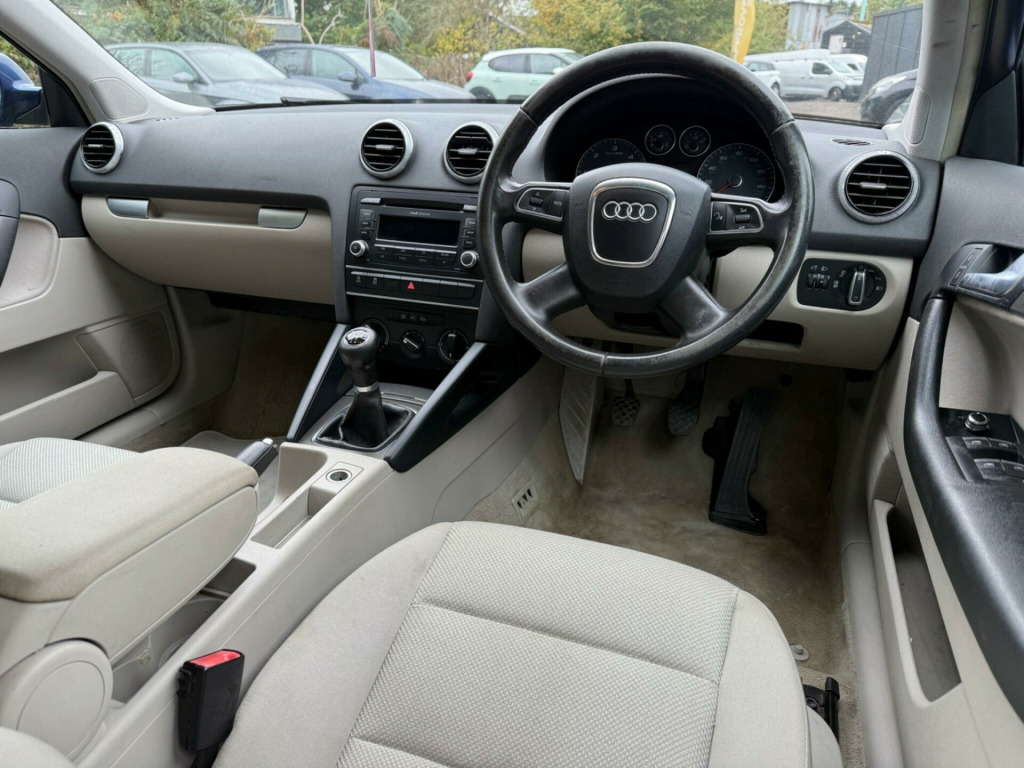 2012 AUDI A3 1.6 TDI , 2 owner , 2 keys , full service history , cam belt water pump done , Really good condition It has no mechanical issues at all, drives amazing and very smooth ,clutch engine gearbox perfect . All good brakes , tyres and good suspension. economical to run , cheap on fuel , 20 tax a year and cheap to insure. Exterior is good some age related marks . nice and clean interior no damages , everything works as it should . It has Nice sound system ,AC, Electric windows and mirrors , start stop . WILL COME WITH new MOT and WARRANTY. Any tests inspection and px welcome . All card payments accepted for more information please contact us. in 6spoke design alloy wheels, air conditioning, ashtray, chorus radio & single cd player, cigarette lighter, deletion of model & engine designation at rear, granite grey inlays, manual headlight levelling, non smoking pack, opal inlays, umbra black inlays