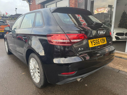 …This is a well presented example of the stylish and economical 1.6 TDI SE Technik Sportback 5dr Diesel Manual Euro 6 (s/s) (110 ps) 6 speed manual in a good looking shade of black finished off with 16" alloys!!! The vehicle has an impressive specification including, air conditioning, CD/RADIO/USB/Bluetooth/DAB stereo system, media connectivity, sat nav, dual zone climate control, electric windows, multiple airbags, rear parking sensors, cruise control, electric windows, multi functioning steering wheel, auto lights and so much more!!! This HPI clear vehicle will include a fresh 12 month MOT pre collection , has service history, has a Full VOSA History report, 2 keys and drives superbly!!! ANY TEST OR TRIAL WELCOME!!!...TOP WARRANTY PACKAGES AVAILABLE!!!.....ASK ABOUT £0 DEPOSIT FINANCE !!! £0 ADMISTARTION FEE ON IN-HOUSE FINANCE DEALS..... Discover this 2017 Audi A3 TDI SE Technik, a well maintained example offering an exceptional ownership experience. This model is powered by an efficient 1.6 litre diesel engine, meeting Euro 6 emission standards. It comes equipped with practical features such as rear parking sensors to aid manoeuvring, and air conditioning for a comfortable cabin environment. The light and rain sensor automatically adjusts headlights, which are Xenon units with distinctive LED daytime running lights. For connectivity, a Bluetooth interface is included, allowing for hands free calls and music streaming. This Audi A3 stands out with 16in Alloy Wheels - 15-Spoke Y-Design, 2 x USB Charging Ports and 1 x AUX-IN, 6-Airbag System with Knee Airbag for Dri, 8 Passive Speakers, Air Conditioning, Anti Theft Locking Wheel Bolts, Anti-Theft Alarm, Audi Connect Infotainment Services - 3 M, Audi Smartphone Interface, Bluetooth Interface, Body Coloured Door Mirrors, CD Drive, Colour Drivers Information System - DIS, Cruise Control, DAB Digital Radio, Door Mirrors - Electrically Adjustable a, Dynamic Suspension, ESC - Electronic Stabilisation Control i, Electric Windows - Front and Rear, Electromechanical Parking Brake, Electromechanical Power Steering, First Aid Kit, Front Centre Armrest, Front and Rear Floor Mats, ISOFIX Child Seat