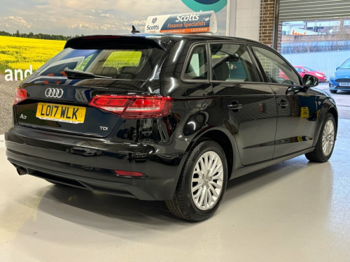 Scott's of Leeds used Car Sales are pleased to offer this AUDI A3 1.6 TDI SE Technik Sportback 5dr Diesel Manual in Black. The car is in good condition throughout, in a lovely colour combination and a great specification including Cruise control, DAB radio, apple carplay, CD player, Bluetooth, Rear parking sensors, USB point, automatic lights, alloy wheels, Electric windows, and much much more. The car will be supplied with an up to date service record having just been serviced in our Workshop, an MOT until January 2027 and 2 Keys ready to drive away. 3 MONTH NATIONWIDE WARRANTY provided with all vehicles. NATIONWIDE DELIVERY also available. A guaranteed 12 Months MOT can be added for an extra £100. DISCLAIMER: The above specification is true and correct. Any other specification listed elsewhere can sometimes be incorrect. Please check with Sales Executive to clarify this if needed prior to purchase. 16in Alloy Wheels - 15-Spoke Y-Design, 2 x USB Charging Ports and 1 x AUX-IN, 6-Airbag System with Knee Airbag for Dri, 8 Passive Speakers, Air Conditioning, Anti Theft Locking Wheel Bolts, Anti-Theft Alarm, Audi Connect Infotainment Services - 3 M, Audi Hill Hold Assist, Audi Smartphone Interface, Auto-Dimming Rear-View Mirror with Light, Bluetooth Interface, Body Coloured Door Mirrors, CD Drive, Cloth Headlining, Colour Drivers Information System - DIS, Cruise Control, DAB Digital Radio, Door Mirrors - Electrically Adjustable a, Dynamic Suspension, ESC - Electronic Stabilisation Control i, Electric Windows - Front, Electromechanical Parking Brake, Electromechanical Power Steering, Email an
