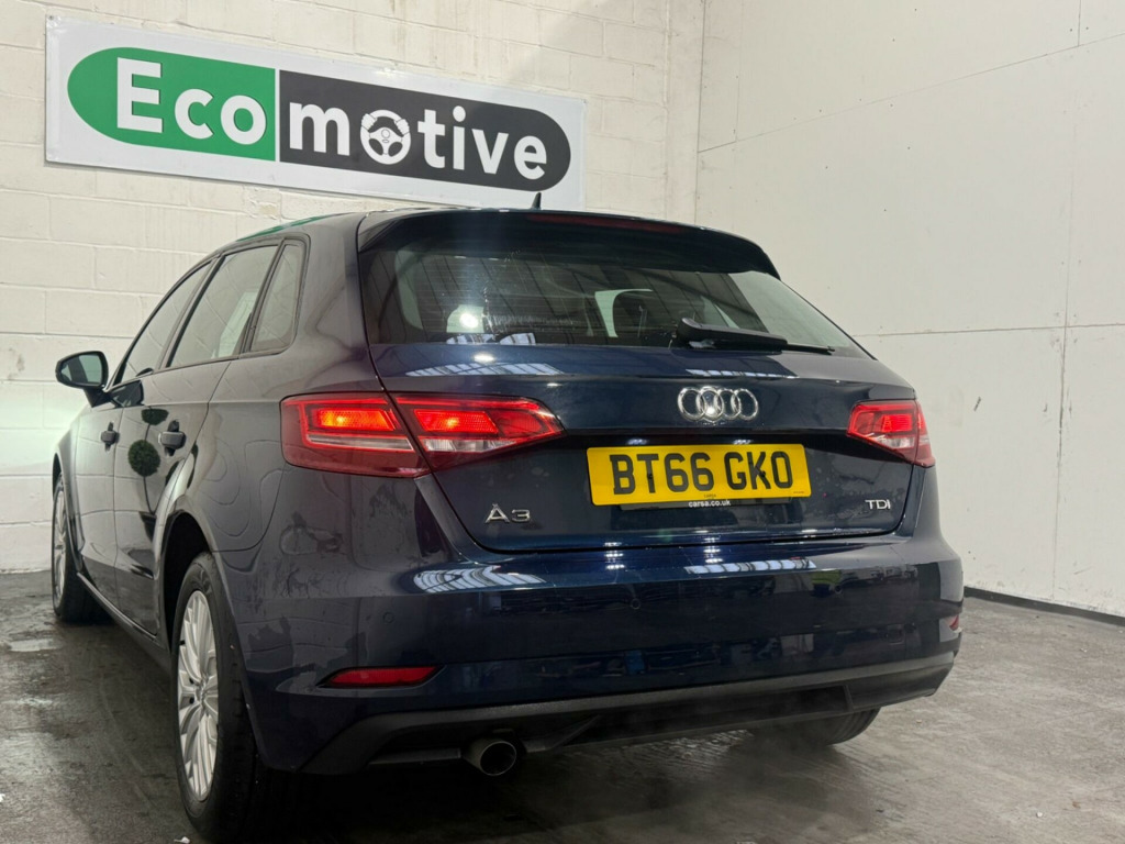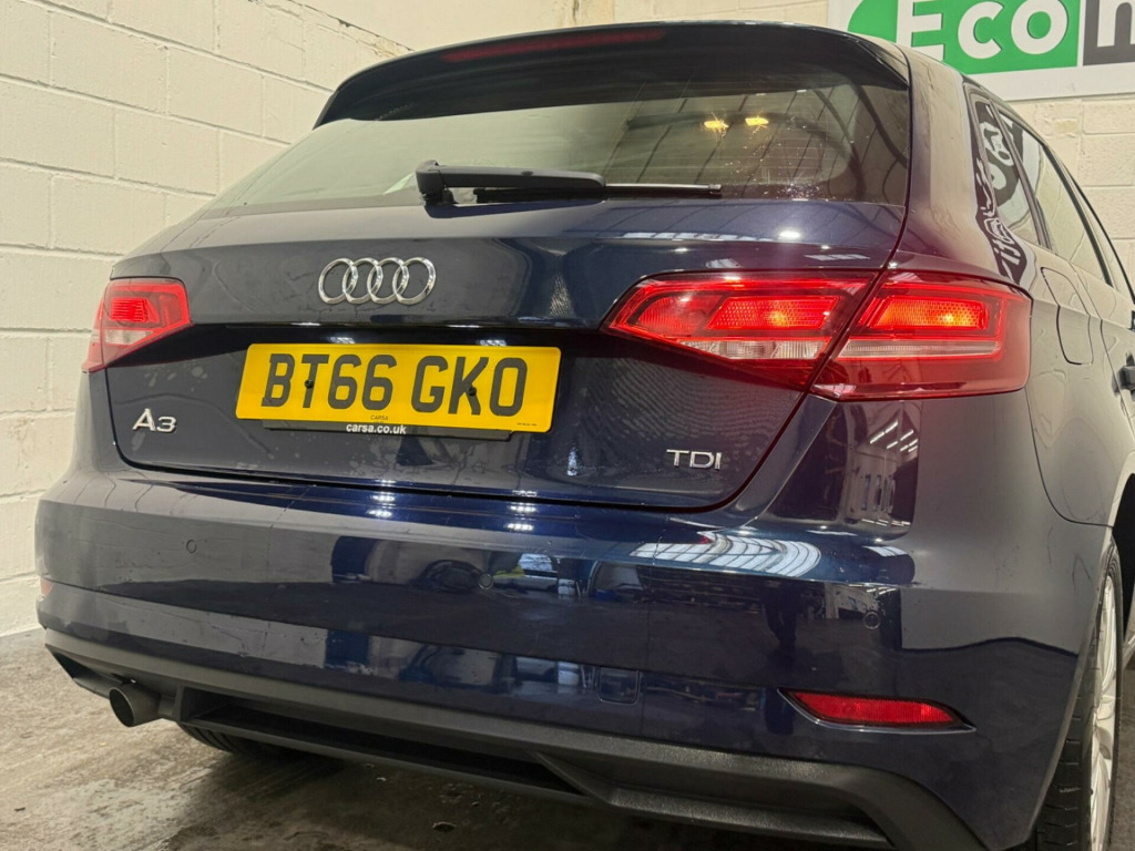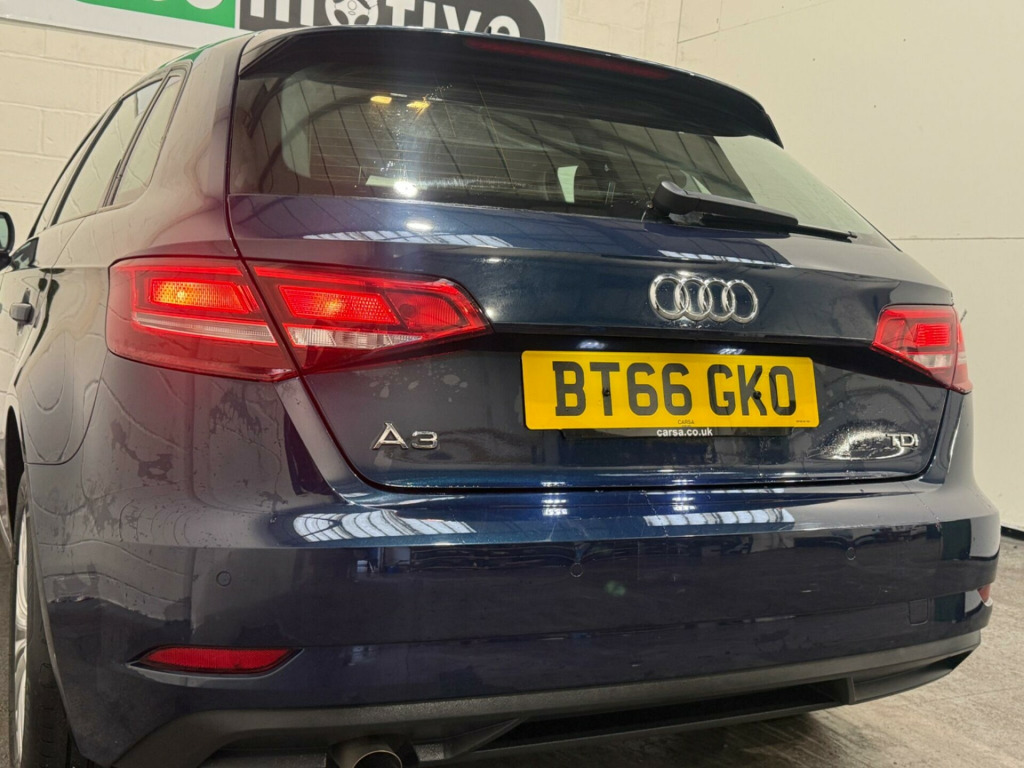 This 2016 Audi A3 TDI SE Technik presents an exceptional opportunity with its remarkably low mileage of just 50,357 miles. This Euro 6 compliant model boasts a clear vehicle history check, offering peace of mind to its next owner. Inside, you'll find comfortable Air Conditioning, Xenon Headlights with distinctive LED Daytime Running Lights, and the convenience of Rear Parking Sensors. The Light and Rain Sensor automatically adjusts your headlights, while the Bluetooth Interface allows for seamless connectivity on the go.This Audi A3 TDI SE Technik truly shines with its impressive fuel economy, achieving an outstanding 74 mpg, which is significantly better than many other vehicles in its class. Its low CO2 emissions also contribute to its appeal, alongside a low insurance group making it an economical choice. Furthermore, the generous boot space ensures practicality for everyday needs and longer journeys, making this a well rounded and appealing vehicle. in alloy wheels - 15-spoke y-design, 2 x usb charging ports and 1 x aux-in, 6-airbag system with knee airbag for driver, 8 passive speakers, air conditioning, anti theft locking wheel bolts, anti-theft alarm, audi connect infotainment services - 3 month trial, audi smartphone interface, bluetooth interface, body coloured door mirrors, cd drive, colour drivers information system - dis, cruise control, dab digital radio, door mirrors - electrically adjustable and heated, dynamic suspension, esc - electronic stabilisation control inc abs - asr and edl, electric windows - front and rear, electromechanical parking brake, electromechanical power steering, first aid kit, front centre armrest, front and rear floor mats, isofix child seat mounting and top tether for front passenger and outer rear seats, immobiliser, inlays - micrometallic silver, interior lighting, light and rain sensor, luggage compartment - lashing points x4, mmi navigation - sd card based, mmi radio plus with 7in electrically retractable colour mmi screen, manual front seat adjustment, non-smoking package, pollen filter, radiator grille - matt black, rear parking sensors, remote central locking with 2 fold away keys, roof spoiler - painted in body colour with aerodynamic inserts in high-gloss black at the side, seat belt monitoring, seats - split folding rear - 60-40, space saver spare wheel, steering wheel - 3-spoke leather - multi-function - sports, storage compartments in the door side trims-centre console-under drivers seat, tool kit and car jack, tyre pressure monitoring system, voice control, warning triangle, xenon headlights with led daytime running lights