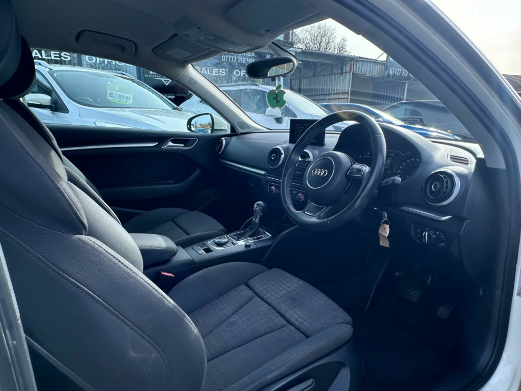 Boasting an impressive MOT valid until February 2027 and a full service history, this 2013 Audi A3 TDI Sport presents a compelling proposition. Powered by an efficient 1.6L Diesel engine, this Sport trim model offers a refined driving experience. With a clear vehicle history check and a modest 95,000 miles on the clock for its age, it comes with the added reassurance of a 3 month warranty. Notable features include the Audi Parking System Plus with front sensors for easier manoeuvring, and a multi-function 3 spoke leather sports steering wheel complete with shift paddles. Stay connected and comfortable with the Bluetooth interface for mobile telephone preparation and dual zone electronic climate control.This Audi A3 stands out with its exceptional fuel economy, achieving an impressive 72 miles per gallon, which indicates it is more economical than many similar vehicles. Furthermore, its low insurance group rating suggests lower running costs, and the generous boot space makes it a practical choice for everyday use and longer journeys. The low CO2 emissions also highlight its environmental consideration compared to other cars in its class. di parking system plus, audi sound system, headlights - variable range control, 12v power socket - centre console, 17in alloy wheels - 5-arm design, abs - anti-lock braking system, ami - audi music interface, asr - anti slip regulation, active bonnet, adaptive brake lights, air vent sleeves - aluminium look, airbags - driver, airbags - drivers knee, airbags - front passenger, airbags - front side, airbags - head level side for front and rear, alarm - thatcham category 1, aluminium interior elements, anti theft locking wheel bolts, audi drive select, car jack, chrome-plated exhaust tailpipe trim, cloth headlining, coat hooks - b pillar - both sides, colour drivers information system - dis, daytime running lights, display screen colour - 5.8in, door mirrors - body coloured with integrated led indicators, door mirrors - electrically adjustable and heated, door sill trims, dual-zone electronic climate control, ebd - electronic brakeforce distribution, edl - electronic differential lock, esp - electronic stability programme, electric windows - front, electromechanical parking brake, electromechanical power steering, first aid kit, fog lights - chrome surrounds, front centre armrest, front fog lights, front passenger airbag deactivation switch, front sports seats, front and rear floor mats, halogen headlights, heated rear windscreen, heated windscreen washer jets, height adjustable boot floor, hydraulic brake assist, isofix child seat mounting for front passenger and rear outer seats, inlays - aluminium mistral, interior lighting, luggage compartment - lashing points x4, mmi radio, mobile telephone preparation - bluetooth interface, multi collision brake assist, preparation for sd card-based navigation system, rear parcel shelf removable, remote central locking with 2 fold away keys, rest recommendation system, roof spoiler - painted in body colour with aerodynamic inserts in high-gloss black at the side, sd card reader, seat belt reminder for all seats, seats - convenience entry - enhanced front folding function, seats - front height adjustment, seats - split folding rear - 60-40, secondary collision brake assist, smoking package, space saver spare wheel, speakers x8, spoiler - body coloured, spoiler - roof, sport suspension, steering wheel - 3-spoke leather - multi-function - sports - shift paddles, steering wheel - height and reach adjustable, steering wheel - multi-function, storage compartments in the door side trims-centre console-under front passenger seat, sun visors - with covered vanity mirrors, tool kit, voice control - navigation, warning triangle, washer fluid level indicator, window surrounds - aluminium