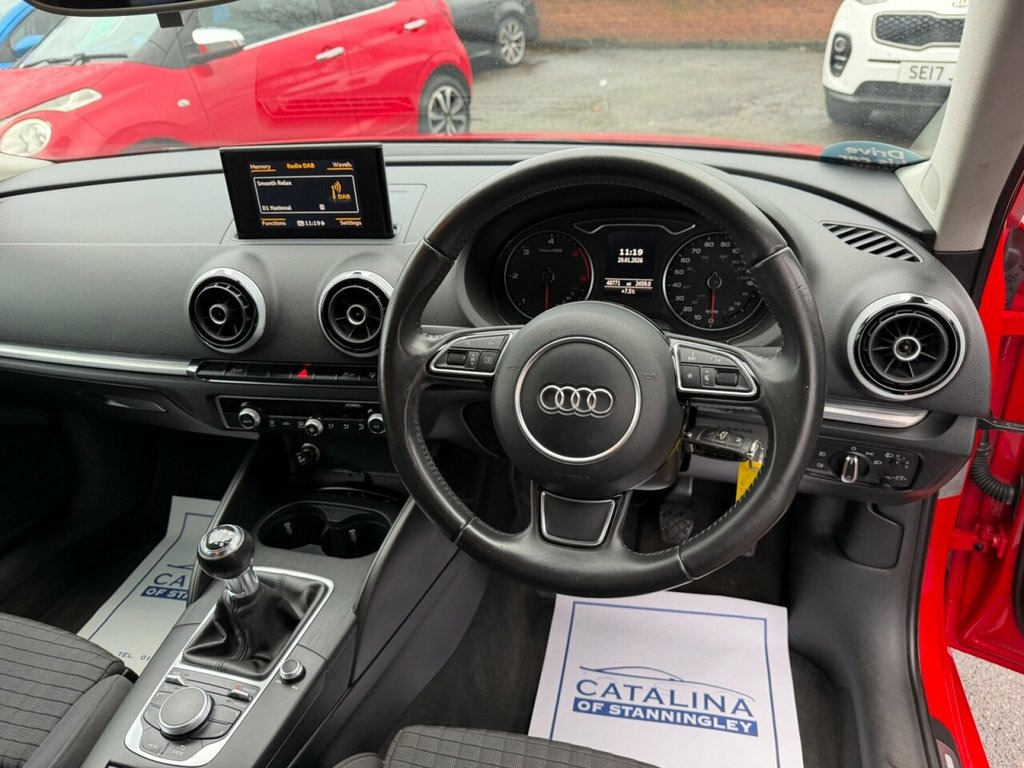 Audi A3 1.6 TDI Sport Sportback – Low Miles | £20 Tax | Just Serviced Diesel | Manual | Euro 5 | 105 PS | 48,738 Miles | MOT Until 07-10-2026 This Audi A3 1.6 TDI Sport Sportback is a superb, low-mileage example of Audi's popular premium hatchback. With just 48,738 miles from new and just serviced by us at 48k, it offers excellent value with very low running costs. Powered by the efficient 1.6 TDI diesel engine producing 105 PS, it delivers smooth performance with excellent fuel economy. With only £20 annual road tax, it remains extremely economical to own. Finished in red with a dark cloth interior, this Sport model comes well equipped with front and rear parking sensors, DAB radio, Bluetooth, and alloy wheels, offering both comfort and convenience. A clean, low-mileage example of the Audi A3 Sportback — combining premium build quality, efficiency, and excellent value. Vehicle Preparation & Warranty Every vehicle is supplied with a minimum of 6 months MOT. If the remaining MOT is less than 6 months at point of sale, the car will receive a FREE 12-month MOT prior to collection. All vehicles are fully up to date with servicing where required. We include a FREE 3-month engine warranty, provided on a return-to-base basis. For additional peace of mind, we offer comprehensive nationwide warranty upgrades covering both parts and labour. These policies can include cover for major components such as the engine, gearbox, turbo, electrics, air con 12V Power Socket - Centre Console, 17in Alloy Wheels - 5-Arm Design, ABS - Anti-Lock Braking System, AMI - Audi Music Interface, ASR - Anti Slip Regulation, Active Bonnet, Adaptive Brake Lights, Air Vent Sleeves - Aluminium Look, Airbags - Driver, Airbags - Drivers Knee, Airbags - Front Passenger, Airbags - Front Side, Airbags - Head Level Side For Front and , Alarm - Thatcham Category 1, Aluminium Interior Elements, Anti Theft Locking Wheel Bolts, Audi Drive Select, Car Jack, Child Locks - Manual, Chrome-Plated Exhaust Tailpipe Trim, Cloth Headlining, Coat Hooks - B Pillar - Both Sides, Colour Drivers Information System - DIS, Cup Holders - Rear x2, Cup Holders - x2 in Centre Console, DAB D