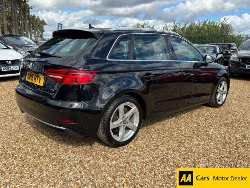 This Audi A3 TDI Sport from 2016 boasts a full service history and has had only one owner, offering excellent provenance. It features a 1.6L Euro 6 diesel engine, ensuring efficient performance. For your comfort and convenience, this Sport trim model includes heated front seats, keyless entry with the Advanced Key system, and a Technology Package with Bluetooth connectivity. Safety is enhanced with rear side airbags, and the aluminium roof rails add a practical touch. The MOT is valid until September 2026, and a clear vehicle history check provides further peace of mind. This particular A3 sits in a low insurance group, which is a significant advantage compared to many similar vehicles, potentially saving you money on running costs. Mythos Black, Rear Side Airbags, Advanced Key, Storage Package, Technology Package, Smoking Package, Cloth Headlining in Black, Heated Front Seats, Auto-Dimming Rear-View Mirror, Aluminium Roof Rails, 17in Alloy Wheels - 5-Arm Design, 2 x USB Charging Ports and 1 x AUX-IN, 6-Airbag System with Knee Airbag for Dri, 8 Passive Speakers, Aluminium Interior Elements, Aluminium Window Trims, Anti Theft Locking Wheel Bolts, Anti-Theft Alarm, Audi Connect Infotainment Services - 3 M, Audi Drive Select, Audi Smartphone Interface, Bluetooth Interface, Body Coloured Door Mirrors, CD Drive, Chrome-Plated Exhaust Tailpipe Trim, Colour Drivers Information System - DIS, Cruise Control, DAB Digital Radio, D