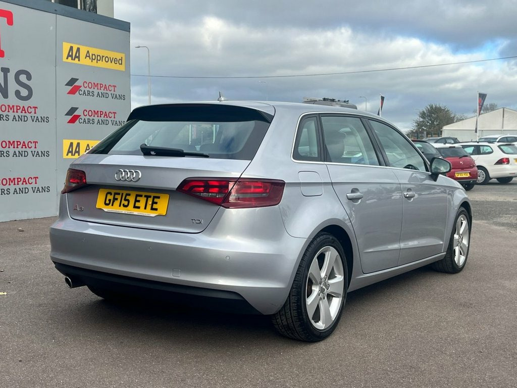 Compact Cars And Vans are delighted to present one of our best sellers the Audi A3 TDI with this particular example boasting less than 47500k miles travelled on a 15 plate. The A3 is an all round money saving hatchback which is powered by a 1.6 litre TDI engine paired with a 6 speed manual gearbox to return a whopping 62.8mpg on a combined cycle and it is not just fuel that you will save money on this Audi is only £20 to tax for the year! The Audi is a spacious 5 door model ideal for families and includes top spec such as steering wheel mounted controls, cruise control,sat nav, DAB radio, air conditioning and so much more. 12V Power Socket - Centre Console, 17in Alloy Wheels - 5-Arm Design, ABS - Anti-Lock Braking System, AMI - Audi Music Interface, ASR - Anti Slip Regulation, Active Bonnet, Adaptive Brake Lights, Air Vent Sleeves - Aluminium Look, Airbags - Driver, Airbags - Drivers Knee, Airbags - Front Passenger, Airbags - Front Side, Airbags - Head Level Side For Front and , Alarm - Thatcham Category 1, Aluminium Interior Elements, Anti Theft Locking Wheel Bolts, Audi Drive Select, Car Jack, Child Locks - Manual, Chrome-Plated Exhaust Tailpipe Trim, Cloth Headlining, Coat Hooks - B Pillar - Both Sides, Colour Drivers Information System - DIS, Cup Holders - Rear x2, Cup Holders - x2 in Centre Console, DAB D