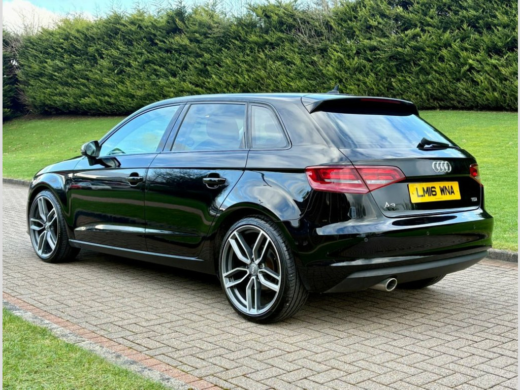April 2016 Audi A3 1.6TDI 110 Sport in Mythos Black. Service History & MOT'd to January 2027. Loaded with spec including Central Armrest, Cruise Control, Navigation System, Bluetooth, Privacy Glass, Multifunctional Steering Wheel, Black Pack etc. Fitted with Brand New 19" Alloys & Tyres (Optional Extra £895) FINANCE AVAILABLE AT KEEN RATES!! Viewing by Appointment Only Please. 12V Power Socket - Centre Console, 17in Alloy Wheels - 5-Arm Design, 2 x SDXC Card Readers, ABS - Anti-Lock Braking System, Adaptive Brake Lights, Airbags - Driver, Airbags - Drivers Knee, Airbags - Front Passenger, Airbags - Front Side, Airbags - Head Level Side For Front and , Alarm - Thatcham Category 1, Aluminium Interior Elements, AMI - Audi Music Interface, Anti Theft Locking Wheel Bolts, ASR - Anti Slip Regulation, Audi Drive Select, Audio Output - 80 Watts, Car Jack, Child Locks - Manual, Coat Hooks - B Pillar - Both Sides, Colour Drivers Information System - DIS, Cup Holders - x2 in Centre Console, DAB Digital Radio, Daytime Running Lights, Display Screen Colour - 5.8in, Door Mirror