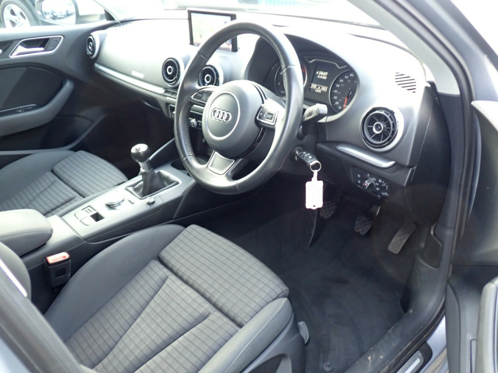 We are very pleased to offer this Audi A3 5-door Sportback powered by the 1.6 TDi diesel engine (Euro 6 / ULEZ Compliant) with 6-speed manual transmission, finished in Metallic Floret Silver. This beautiful A3 Sport has a low mileage of just a little over 37,300 miles and is presented in superb condition inside and out, with excellent bodywork and a clean and tidy interior. This car boasts an impressive specification with features including sports seats that are heated, dual zone climate control, satellite navigation, DAB digital radio, Bluetooth, cruise control, rear parking sensors and much more. It comes with a full service history as well as carpet mats, a spare wheel, 2 keys and the Audi book pack. It's available now for your viewing and test drive in Tonbridge where we are open 7 days a week. v power socket - centre console, 2 x sdxc card readers, ami - audi music interface, audio output - 80 watts, dab digital radio, display screen colour - 5.8in, full european map data, mmi radio, mobile telephone preparation - bluetooth interface, satellite navigation system - sd card based, speakers x8, usb connection, 17in alloy wheels - 5-arm design, anti theft locking wheel bolts, door mirrors - body coloured with integrated led indicators, door mirrors - electrically adjustable and heated, electric windows - front and rear, exhaust tailpipe - single, fog lights - chrome surrounds, heated rear windscreen, heated windscreen washer jets, model and engine technology badges at rear, roof spoiler - painted in body colour with aerodynamic inserts in high-gloss black at the side, space saver spare wheel, spoiler - body coloured, window surrounds - aluminium, abs - anti-lock braking system, asr - anti slip regulation, adaptive brake lights, airbags - driver, airbags - drivers knee, airbags - front passenger, airbags - front side, airbags - head level side for front and rear, alarm - thatcham category 1, child locks - manual, ebd - electronic brakeforce distribution, esp - electronic stability programme, electromechanical parking brake, first aid kit, front passenger airbag deactivation switch, hydraulic brake assist, isofix child seat mounting for front passenger and rear outer seats, immobiliser, remote central locking with 2 fold away keys, seat belt reminder for all seats, secondary collision brake assist, warning triangle, aluminium interior elements, car jack, coat hooks - b pillar - both sides, cup holders - x2 in centre console, door sill trims, dual-zone electronic climate control, front centre armrest, front sports seats, front and rear floor mats, glovebox - illuminated, height adjustable boot floor, inlays - aluminium mistral silver, interior elements - air vents - aluminium, interior elements - frame around the inside door handle - aluminium, interior elements - glove compartment - aluminium, interior elements - window control switches - aluminium, interior lighting, luggage compartment - illuminated, luggage compartment - lashing points x4, pollen filter, rear parcel shelf removable, seats - adjustment for cushion depth, seats - extendable thigh support, seats - front height adjustment, seats - split folding rear - 60-40, smoking package, steering wheel - 3-spoke leather - multi-function - sports, steering wheel - height and reach adjustable, steering wheel - multi-function, storage compartment - centre console, storage compartment under drivers seat, storage compartments - door side trims, sun visors - with covered vanity mirrors, tool kit, audi drive select, colour drivers information system - dis, edl - electronic differential lock, electromechanical power steering, rest recommendation system, sport suspension, tyre pressure monitoring system, voice control, voice control - navigation, washer fluid level indicator, daytime running lights, front fog lights, halogen headlights, headlights - electric range control