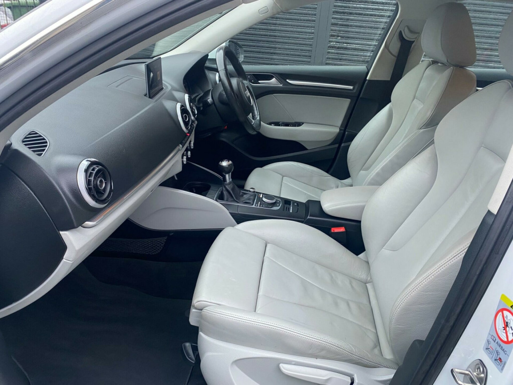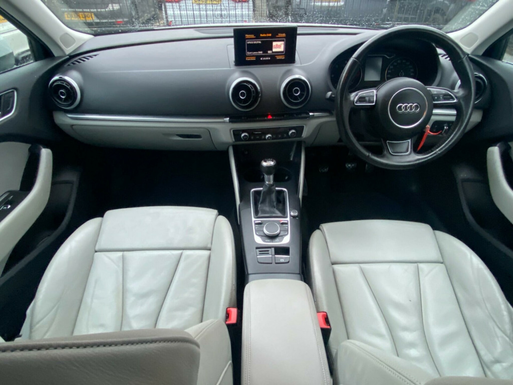 Drive and Smile are pleased to present this 2014 Audi A3 TDI Sport along with service history, 2 keys and only £20 road tax for 12 months. This vehicle offers an exceptional ownership proposition with its impressive 74 mpg fuel economy. This particular A3 is a Sport trim model, powered by an efficient 1.6 litre diesel engine. Inside, you will find a DAB digital radio for enhanced listening, dual zone electronic climate control to keep everyone comfortable, and a Bluetooth interface for seamless mobile telephone preparation.The benefits of choosing this Audi A3 are clear when you consider its highlights. Its low CO2 emissions mean it is kinder to the environment, and its low insurance group rating suggests more affordable running costs. Furthermore, the generous boot space provides ample room for luggage or shopping, making it a practical choice for everyday use and longer journeys. di sound system, tyre pressure monitoring system, 17in alloy wheels - 5-arm kinetic design, 18in alloy wheels - 5-arm dynamic design part polished, light and rain sensor package, panoramic glass sunroof, comfort package, deletion of engine technology designation at rear, milano leather - sports seats - titanium grey, non-smoking package, 12v power socket - centre console, 17in alloy wheels - 5-arm design, abs - anti-lock braking system, ami - audi music interface, asr - anti slip regulation, active bonnet, adaptive brake lights, air vent sleeves - aluminium look, airbags - driver, airbags - drivers knee, airbags - front passenger, airbags - front side, airbags - head level side for front and rear, alarm - thatcham category 1, aluminium interior elements, anti theft locking wheel bolts, audi drive select, car jack, child locks - manual, chrome-plated exhaust tailpipe trim, cloth headlining, coat hooks - b pillar - both sides, colour drivers information system - dis, cup holders - rear x2, cup holders - x2 in centre console, dab digital radio, daytime running lights, display screen colour - 5.8in, door mirrors - body coloured with integrated led indicators, door mirrors - electrically adjustable and heated, door sill trims, dual-zone electronic climate control, ebd - electronic brakeforce distribution, edl - electronic differential lock, esp - electronic stability programme, electric windows - front and rear, electromechanical parking brake, electromechanical power steering, exhaust tailpipe - chrome plated, exhaust tailpipe - twin, first aid kit, fog lights - chrome surrounds, front centre armrest, front fog lights, front passenger airbag deactivation switch, front sports seats, front and rear floor mats, halogen headlights, heated rear windscreen, heated windscreen washer jets, height adjustable boot floor, hydraulic brake assist, isofix child seat mounting for front passenger and rear outer seats, inlays - aluminium mistral, interior lighting, luggage compartment - lashing points x4, mmi radio, mobile telephone preparation - bluetooth interface, multi collision brake assist, preparation for sd card-based navigation system, rear parcel shelf removable, remote central locking with 2 fold away keys, rest recommendation system, roof spoiler - painted in body colour with aerodynamic inserts in high-gloss black at the side, sdhc card reader x2, seat belt reminder for all seats, seats - convenience entry - enhanced front folding function, seats - front height adjustment, seats - split folding rear - 60-40, secondary collision brake assist, smoking package, space saver spare wheel, speakers x8, spoiler - body coloured, spoiler - roof, sport suspension, steering wheel - 3-spoke leather - multi-function - sports, steering wheel - height and reach adjustable, steering wheel - multi-function, storage compartments in the door side trims-centre console-under front passenger seat, sun visors - with covered vanity mirrors, tool kit, usb connection, voice control - navigation, warning triangle, washer fluid level indicator, window surrounds - aluminium