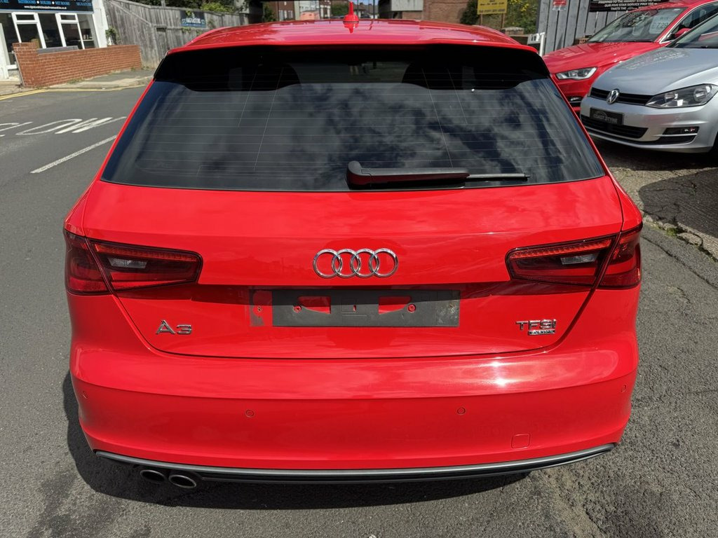 2014 Audi A3 1.8 TFSI S Line Hatchback, automatic. This red hatchback has 105,000 miles on the clock and is powered by a 1.8-liter petrol engine. The exterior features S Line body styling, 18-inch alloy wheels, a high-gloss black radiator grille, and chrome-plated exhaust tailpipe trims. The door mirrors are body-coloured, electrically adjustable, and heated, with integrated LED indicators. ?Inside, the car offers a comfortable and connected driving experience. It includes an MMI radio, a 5.8-inch color display screen, DAB digital radio, and an Audi Music Interface. Bluetooth connectivity is available for mobile phone preparation, and there are eight speakers for a quality audio experience. ?The car also comes with a Storage and Luggage package, a tool kit, and sun visors with covered vanity mirrors. For added convenience, there are 12V power sockets in both the centre console and the rear. Performance-wise, the car has a top speed of 142 mph and can accelerate from 0 to 60 mph in 6.7 seconds. Its combined fuel consumption is 43.5 mpg. 12V Power Socket - Centre Console, 12V Power Socket - Rear, 18in Alloy Wheels - 5-Parallel Spoke Des, ABS - Anti-Lock Braking System, AMI - Audi Music Interface, ASR - Anti Slip Regulation, Active Bonnet, Adaptive Brake Lights, Air Vent Sleeves - Aluminium Look, Airbags - Driver, Airbags - Drivers Knee, Airbags - Front Passenger, Airbags - Front Side, Airbags - Head Level Side For Front and , Alarm - Thatcham Category 1, Aluminium Interior Elements, Anti Theft Locking Wheel Bolts, Audi Drive Select, Car Jack, Chrome-Plated Exhaust Tailpipe Trim, Cloth Headlining in Black, Coat Hooks - B Pillar - Both Sides, Colour Drivers Information System - DIS, Cup Holders - Rear x2, Cup Holders - x2 in C