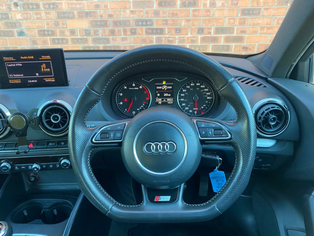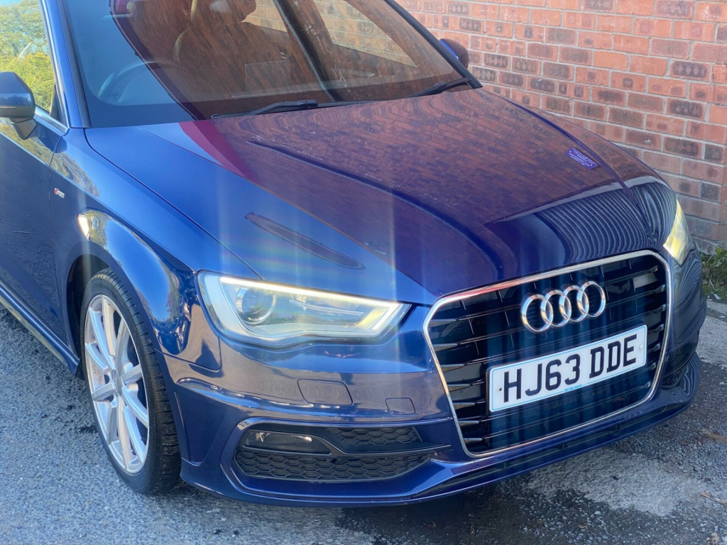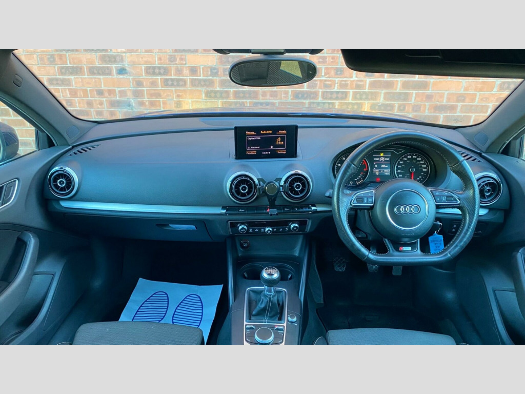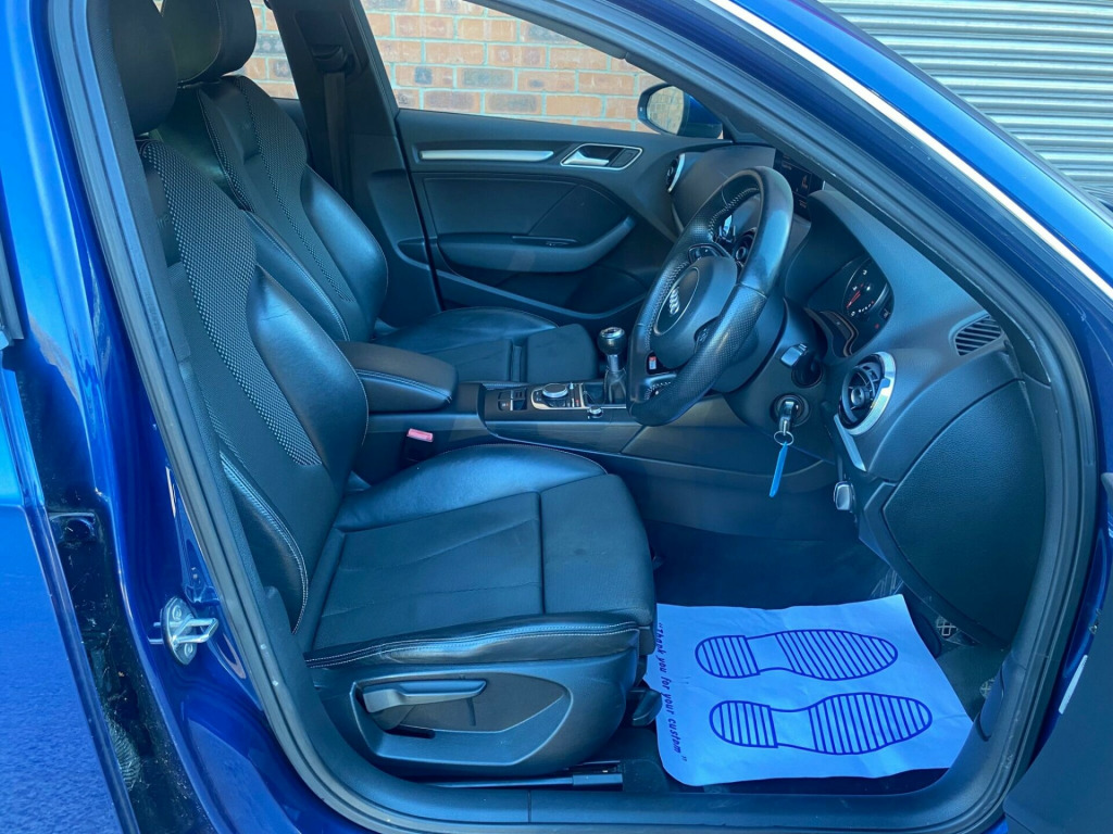 2 FORMER KEEPERS 2 KEYS FULL SERVICE HISTORY INTERVALS 8K, 11K, 20K, 41K, 55K, 66K, 80K This 2013 Audi A3 TFSI S line presents an exceptional opportunity with its remarkably low mileage of just 81,088 miles for its age. This stylish hatchback is powered by a responsive 1.8 litre petrol engine, meeting Euro 6 emissions standards, and boasts the desirable S line trim. Inside, you'll find a flat bottomed multifunction steering wheel for an engaging driving experience, alongside dual zone electronic climate control to ensure comfort for all occupants. Connectivity is made simple with the Bluetooth interface for mobile telephone preparation, and the car is equipped with Bi Xenon Plus headlights for superior visibility.The Audi A3 TFSI S line offers a compelling blend of performance and practicality. Its acceleration from 0 to 62 miles per hour in a swift 7.2 seconds indicates a more dynamic driving experience compared to many similar vehicles. Furthermore, the generous boot space provides ample room for luggage or shopping, making it a versatile choice for everyday use and longer journeys alike. v power socket - centre console, 12v power socket - rear, 18in alloy wheels - 5-parallel spoke design partly polished, abs - anti-lock braking system, ami - audi music interface, asr - anti slip regulation, active bonnet, adaptive brake lights, air vent sleeves - aluminium look, airbags - driver, airbags - drivers knee, airbags - front passenger, airbags - front side, airbags - head level side for front and rear, alarm - thatcham category 1, aluminium interior elements, anti theft locking wheel bolts, audi drive select, car jack, chrome-plated exhaust tailpipe trim, cloth headlining in black, coat hooks - b pillar - both sides, colour drivers information system - dis, cup holders - rear x2, cup holders - x2 in centre console, dab digital radio, daytime running lights, display screen colour - 5.8in, door mirrors - body coloured with integrated led indicators, door mirrors - electrically adjustable and heated, door sill trims with s line logo, dual-zone electronic climate control, ebd - electronic brakeforce distribution, edl - electronic differential lock, esp - electronic stability programme, electric windows - front and rear, electromechanical parking brake, electromechanical power steering, exhaust tailpipe - twin, first aid kit, fog lights - high gloss black surrounds, front centre armrest, front fog lights, front passenger airbag deactivation switch, front sports seats, front and rear floor mats, gear knob - perforated leather, halogen headlights, headlights - automatic dynamic range control, headlights - bi-xenon plus, headlights washers, heated rear windscreen, heated windscreen washer jets, height adjustable boot floor, hydraulic brake assist, isofix child seat mounting for front passenger and rear outer seats, illuminated vanity mirrors, inlays - matt brushed aluminium, interior lighting, led daytime running lights, led rear indicators, led rear lights, luggage compartment - lashing points x4, luggage compartment - side net, mmi radio, mobile telephone preparation - bluetooth interface, multi collision brake assist, preparation for sd card-based navigation system, radiator grille - high gloss black, rear parcel shelf removable, remote central locking with 2 fold away keys, rest recommendation system, roof spoiler - painted in body colour with aerodynamic inserts in high-gloss black at the side, s line badges on wings, s line body styling, s line design front and rear bumpers side grilles and dffusers in platinum grey, s line design front bumper-rear diffuser-side sills and roof spoiler, sdhc card reader x2, seat belt reminder for all seats, seats - convenience entry - enhanced front folding function, seats - front height adjustment, seats - split folding rear - 60-40, secondary collision brake assist, smoking package, space saver spare wheel, speakers x8, spoiler - body coloured, spoiler - roof, sport suspension, steering wheel - height and reach adjustable, steering wheel - multi-function, steering wheel - multifunction - flat bottomed, storage compartment under rear seat, storage compartments in the door side trims-centre console-under front passenger seat, storage net in front passenger footwell and front seat backrests, storage and luggage package, sun visors - with covered vanity mirrors, tool kit, usb connection, voice control - navigation, warning triangle, washer fluid level indicator, window surrounds - aluminium
