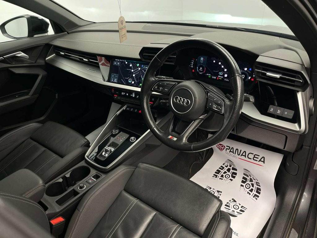REF : MW21 AUDI A3 2.0 TDI 30 S LINE SALOON 4DR DIESEL S TRONIC EURO 6 116 BHP FINISHED IN EXCLUSIVE GREY WITH FULL LEATHER INTERIOR. THIS HIGH SPECIFICATION EXAMPLE BOASTS THE 1 OWNER FROM NEW AND A FULL SERVICE RECORD COMES WITH FACTORY EXTRAS WHICH INCLUDE | COMFORT&SOUND | APPLE CAR PLAY | B&O SOUND SYSTEM | TECHNOLOGY PACKAGE | VIRTUAL DASH | 18INCH GLOSS BLACK ALLOYS | MULTIFUNCTIONAL STEERING WHEEL | FRONT HEATES SEATS | PRIVACY GLASS | REVERSE CAMERA | FRONT AND REAR PARKING SENSORS | 2 KEY | KEYLESS START | HEATED AND FOLDING MIRRORS | PLUS MUCH MORE BE FAST - A RARE FIND IN THIS SPECIFICATION AND NOT TO BE MISSED.... Further to this all vehicles are provided with a comprehensive AA Dealer Care Extended Guarantee and Full AA Roadside, Recovery and Home Start & Onward travel (where not covered under the manufactures own warranty). HPI checks are carried out making sure all cars are clear from any concern, offering you total piece of mind. Every vehicle's mileage is fully guaranteed as genuine. Included with your purchase you will receive a minimum of 3 months Warranty with the option to extended and tailor your package at the time of purchase. Our vehicles are supplied fully valeted to the highest standards and include up to date servicing with a minimum of 9 months MOT. We are regulated by the FCA and can provide a range of flexible finance options, tailoring a package to your needs. We aim to a make the numbers work for you, including 0% deposit dea 12v Socket and Storage Compartment in Fr, 18in Alloy Wheels - 5-Arm Dynamic Design, 2 USB-C Ports with Charge and Data Funct, 6 Passive Loudspeakers, Airbags - Driver and Front Passenger wit, Aluminium Interior Elements, Aluminium Window Trims, Anti Theft Locking Wheel Bolts, Anti-Theft Alarm, Audi Connect Emergency Call and Service, Audi Connect Navigation and Infotainment, Audi Drive Select, Audi Pre-Sense Front with Pedestrian and, Audi Smartphone Interface, Audi Virtual Cockpit, Auto Dimming and Frameless Rear View Mir, Automatic Start-Stop System with Recuper, Bluetooth Interface, Body Coloured Door Mirrors, Child Seat Anchors ISOFIX in Front, Top , Cloth Headlining in Black, Collision