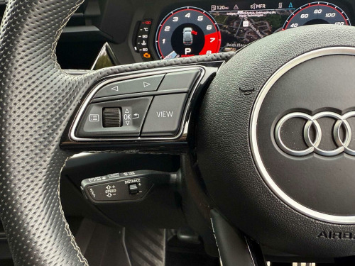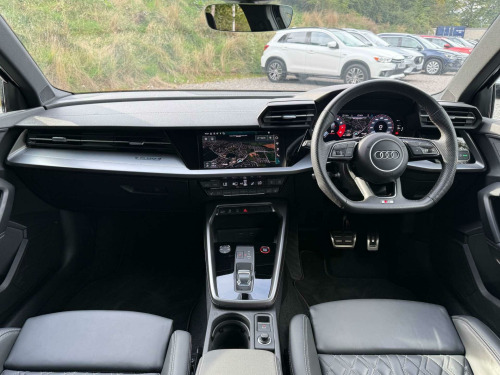 Introducing the Audi A3 2.0 S3 Sportback TFSI Quattro Semi-Auto 4WD 5dr – a masterpiece of engineering and design that promises to elevate your driving experience to unparalleled heights. With only 16,500 miles on the clock and having been cherished by just two previous owners, this stunning vehicle is ready to become your trusted companion on the road.Dressed in an elegant black finish, the Audi A3 exudes sophistication and style, turning heads wherever it goes. Its sleek lines and dynamic stance are a testament to Audi's commitment to crafting vehicles that are as visually striking as they are exhilarating to drive.Under the bonnet, the 2.0-litre TFSI engine delivers a thrilling performance, seamlessly paired with the precision of a semi-automatic transmission. The Quattro all-wheel-drive system ensures exceptional grip and stability, providing you with confidence and control in all driving conditions.Step inside, and you'll be greeted by a luxurious interior that combines comfort with cutting-edge technology. The spacious Sportback design offers ample room for both passengers and luggage, making it the perfect choice for both city commutes and weekend getaways.Don't miss your chance to own this exceptional Audi A3. With its low mileage, impeccable pedigree, and striking black finish, it's a rare find that won't be available for long. Experience the perfect blend of performance, luxury, and style – contact us today to arrange a test drive and discover why the Audi A3 is the ultimate driving machine.. Storage Package, Windscreen with Acoustic Glazing, Voice Control System with Natural Language Interaction, Tyre Repair Kit, Tyre Pressure Loss Indicator, Tool Kit, Steering Wheel - Sports Contour Leather-Wrapped with Multi-Function Plus 3-Spoke - Shift Paddles Flat-bottomed, Split-Folding Rear Seat Bench can be Split 40: 20: 40 or Fully, with Centre Armrest and Cup Holders, Seat Belt Monitoring, S3 Design Body Styling, S Sport Suspension, Remote Central Locking, Rear Side Air Outlets - Grained Matt Black, Rear Parking Sensors, Progressive Steering, Privacy Glass - Dark-Tinted Rear Window - Rear Door and Side Window., Privacy Glass, Pedals in Stainless Steel and Footrest in Black, Audi Connect Navigation and Infotainment Services Plus (3 Year Subscription From New), DAB Digital Radio, Cruise Control, Collision Avoidance Assistant, Cloth Headlining in Black, Brake Calipers Painted in Glossy Black, Bluetooth Interface, Automatic Start-Stop System with Recuperation, Auto Dimming and Frameless Rear View Mirror, Audi Virtual Cockpit, Audi Smartphone Interface, Audi Pre-Sense Front with Pedestrian and Cyclist Recognition, Audi Drive Select, Dual-Branch Oval Twin Tailpipes in Chrome-Plated Finish, Audi Connect Emergency Call and Service, Audi Beam, Anti-Theft Alarm, Anti Theft Locking Wheel Bolts, Aluminium Window Trims, Aluminium Look Door Mirror Housings, Aluminium Interior Elements, Airbags - Driver and Front Passenger with Passenger Airbag Deactivation, 6 Passive Loudspeakers, 2 USB-C Ports with Charge and Data Functions, 18in Alloy Wheels - 10-Spoke Star Style, Heated Front Seats, Manual Boot Compartment Lid, MMI Navigation Plus with High Resolution 10.1in Touchscreen Colour Display, Luggage Compartment Floor Covering, Light and Rain Sensor, Lane Departure Warning, LED Interior Light Package, LED Headlights with LED Rear Lights and Dynamic Rear Indicators, Inlays - Dark Spectrum Aluminium, Illuminated Door Sill Trims with Aluminium Inserts and S Logo, I-Size and Top Tether Child Seat Mounting for the Outer Rear Seats, Hill Hold Assist, 12v Socket and Storage Compartment in Front Centre Console, Headlights Washers, Front and Rear Floor Mats, Front and Rear Centre Armrest in Leather, Front Side Airbags with Head Airbags and Interaction Airbag, First Aid Kit and Warning Triangle and 2 Safety Vests, Exterior Mirrors - Electrically Adjustable - Heated and Folding - Automatically Dimming on Both Sides with Built-In LED Side Indicators - Including Automatic Kerb-Side Function for the Passenger-Side, Emergency Call - E-Call, Electronically Operated Child Locks, Electric Windows - Front, ESC - Electronic Stabilisation Control inc ABS - ASR and EDL, Dual-Zone Electronic Climate Control.