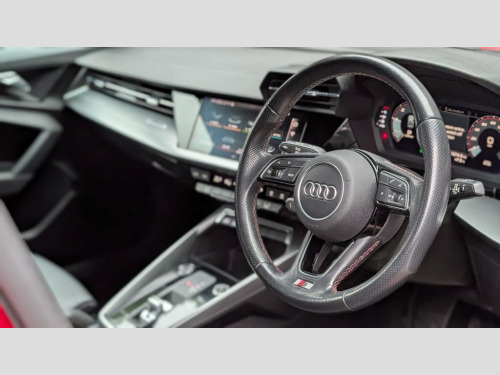This lovely example of an Audi A3 2.0 TDI Saloon comes with a great specification including - 19" Alloy wheels with brand new tyres - Virtual cockpit - Satellite navigation - Apple car play - Electric folding mirrors - Cruise control - Rear parking sensors - Automatic transmission - Bluetooth telephone and audio - LED headlights with daytime running lights - Red paintwork - Black leather interior with aluminium trims - Optional extras include: - Exterior de chroming - Gloss black mirrors - Gloss black Audi Badges - Optional brake caliper painting - Optional rear privacy - Optional 36m manufacturer equivalent warranty - Ceramic coating - PLEASE CALL US ON 01780 435024 TO SPEAK WITH A MEMBER OF OUR SALES TEAM TO RESERVE YOUR NEXT VEHICLE - NUMBER OF KEYS TO BE CONFIRMED AT THE POINT OF SALE - The fitment of the brand new tyres and alloy wheels are subject to a fee of £249. This also warrants the fitted parts for 12 months. 12v Socket and Storage Compartment in Fr, 18in Alloy Wheels - 5-Arm Dynamic Design, 2 USB-C Ports with Charge and Data Funct, 6 Passive Loudspeakers, Airbags - Driver and Front Passenger wit, Aluminium Interior Elements, Aluminium Window Trims, Anti Theft Locking Wheel Bolts, Anti-Theft Alarm, Audi Connect Emergency Call and Service, Audi Connect Navigation and Infotainment, Audi Drive Select, Audi Pre-Sense Front with Pedestrian and, Audi Smartphone Interface, Audi Virtual Cockpit, Auto Dimming and Frameless Rear View Mir, Automatic Start-Stop System with Recuper, Bluetooth Interface, Body Coloured Door Mirrors, Cloth Headlining in Black, Collision Avoidance Assistant, Cruise Control, DAB D