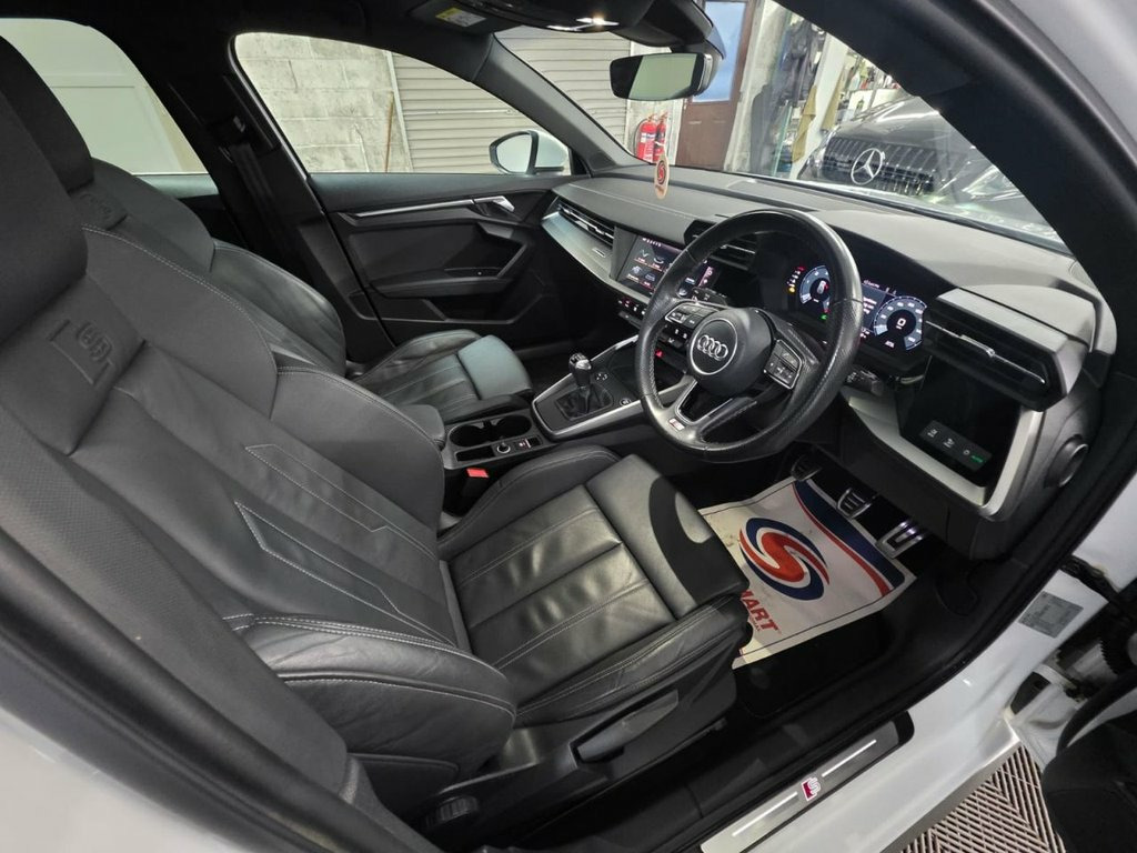 A truly beautiful 2021 Audi A3 S Line ready for viewing at Roy Hanna Motors! 2 keys. 1 owner from new. MOT to October 2026. A good service history with records at - ~ 15,185 miles. ~ 30,418 miles ~ 48,791 miles. This car will also be fully serviced and have a pre-delivery check for its new owner. *Brand new 19" Alloy Wheels & Tyres are an optional extra* * We have a variety of wheels to chose from for each vehicle* This model is packed full of factory extras like - ~ SatNav. ~ Audi Virtual Cockpit - 10.25" display. ~ Rear parking sensors. ~ S Line styling. ~ 10.1" colour touch screen display. ~ Audi drive select. ~ Audi connect emergency call and service. ~ Audi smartphone interface. ~ Information display system. ~ Audi music interface. ~ Rear tinted windows. ~ Front fog lights. ~ Front sports seats. ~ Twin exhaust tailpipe. ~ Multi Media Interface control system. ~ Remote electric boot opening/closing. ~ Voice control system. ~ Remote central locking. ~ Climate and traction controls. ~ Steering wheel mounted controls. ~ AUX & USB connectivity. ~ CD/Radio Player. ~ Body Coloured Bumpers. ~ Electric windows. *We Have Many Different Finance HP & PCP Deals Available To Suit Your Budget, You Can Drive Away In Your New Car With £0 Deposit & Pay Nothing For 2 Full Months! *For A Personalised Quote Give Us A PM / Text / Call Or Propose Yourself For Finance On Our Website *All Usual Dealer Facilities Available. *Credit/Debit Cards A 12v Socket and Storage Compartment in Fr, 18in Alloy Wheels - 5-Arm Dynamic Design, 2 USB-C Ports with Charge and Data Funct, 6 Passive Loudspeakers, Airbags - Driver and Front Passenger wit, Aluminium Interior Elements, Aluminium Window Trims, Anti Theft Locking Wheel Bolts, Anti-Theft Alarm, Audi Connect Emergency Call and Service, Audi Connect Navigation and Infotainment, Audi Drive Select, Audi Pre-Sense Front with Pedestrian and, Audi Smartphone Interface, Audi Virtual Cockpit, Auto Dimming and Frameless Rear View Mir, Automatic Start-Stop System with Recuper, Bluetooth Interface, Body Coloured Door Mirrors, Cloth Headlining in Black, Collision Avoidance Assistant, Cruise Control, DAB D