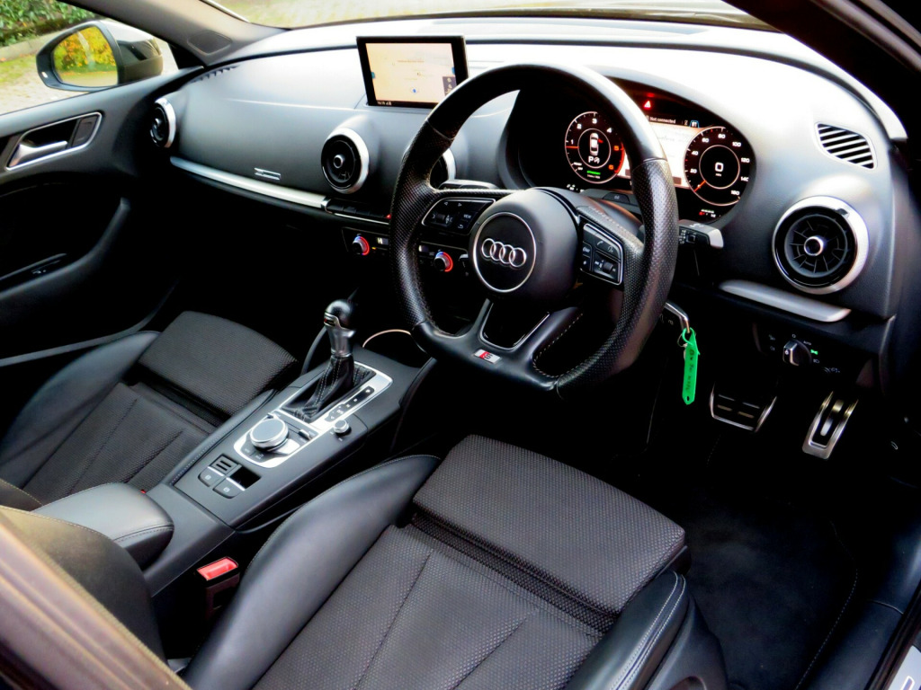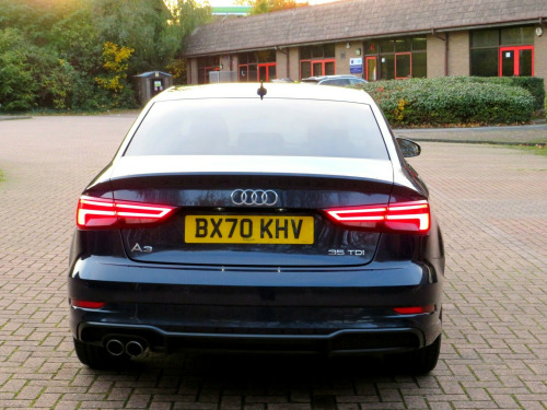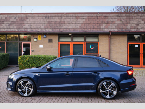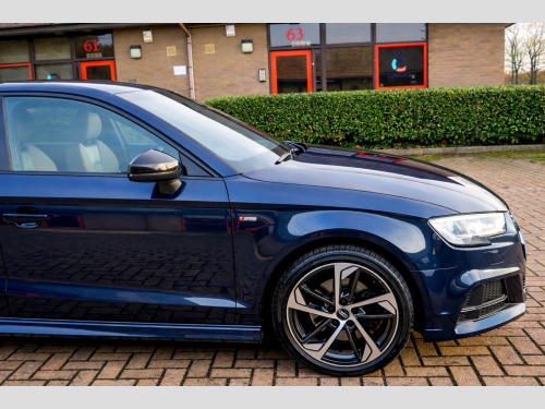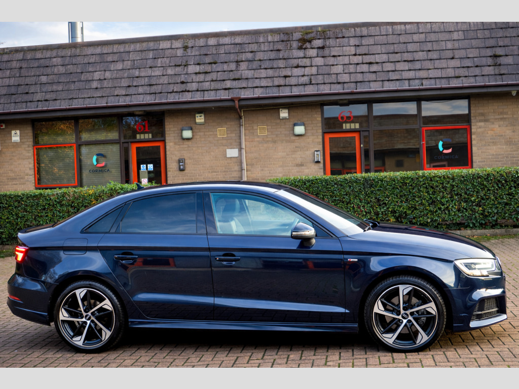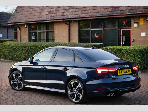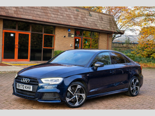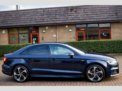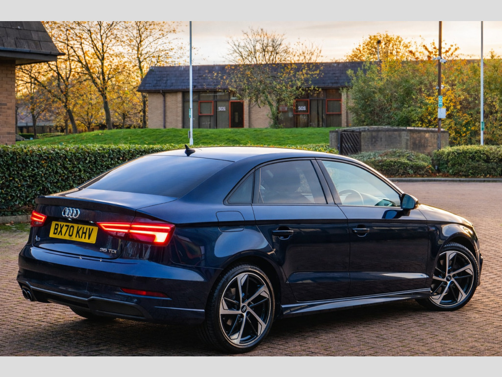 We are delighted to present this exceptional 2020 (70) Audi A3 2.0 TDI 35 Black Edition S Tronic, a superb example finished in desirable Cosmos Blue and complemented by part Black Pearl Nappa leather and cloth upholstery with contrasting Rock Grey stitching.This highly specified Black Edition saloon is powered by a responsive and efficient 2.0 TDI turbo diesel engine producing 150 PS, paired with Audi's smooth S Tronic automatic transmission with paddle shift. The vehicle has had two previous keepers, benefits from a full service history, and comes with MOT until September 2026 with no advisories, reflecting the excellent care it has received.Equipped with the sought-after Technology Pack Advanced, the car features Audi's impressive Virtual Cockpit digital dashboard, satellite navigation, smartphone interface with Apple CarPlay, wireless phone charging, and Audi Connect services.Additional features include:18'' alloy wheelsBlack Styling PackageLED front and rear lights with Bi-Xenon headlights and LED daytime running lightsPrivacy glass and roof spoilerRear parking sensors with acoustic warningCruise controlAudi Drive Select (Efficiency, Comfort, Auto, Dynamic, Individual)Dual-zone automatic climate controlFlat-bottom multifunction leather steering wheel with paddle shiftAudi Multimedia Interface with DAB radio, USB, AUX and SD card readerBluetooth phone and audio connectivityStop-start technologyInside, the cabin offers S-embossed sports seats, matt brushed aluminium interior trim, illuminated door sills, ISOFIX child seat mounting points, and a driver information system designed for comfort and practicality.The vehicle is supplied with:Full book packTwo keysHPI clear certificateRecent engine oil service3 months nationwide warrantyFinance options are available subject to status, and nationwide delivery can be arranged at additional cost.This is a well-maintained, high-specification example of the ever-popular Audi A3, offering a perfect combination of performance, efficiency, technology, and style.,