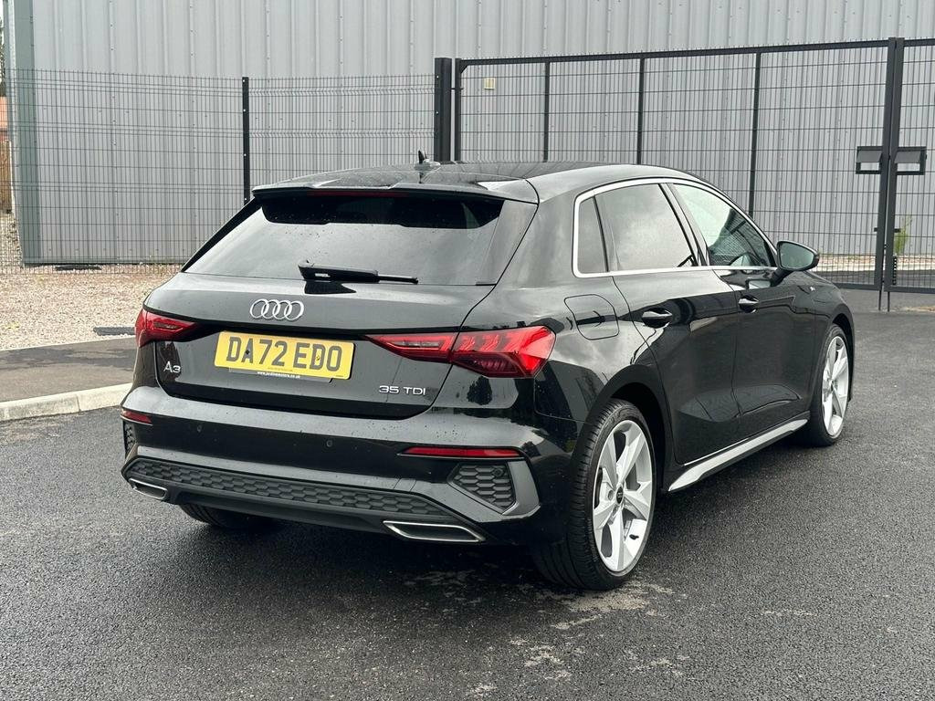 Audi A3 2.0 TDI 35 S line Sportback S Tronic Euro 6 (s/s) 5dr, , This car comes with, Extended Ambient Lighting Pack, Twin Leather - Front Sport Seats with S Embossed Logo - Steel Grey, Storage Package, Steering Wheel - Sports Contour Leather-Wrapped with Multi-Function Plus 3-Spoke - Shift Paddles Flat-bottomed, Comfort and Sound Package, 4-Way Lumbar Support for Front Seats, Driver Assistance Package, Headlights - High-Beam Assist, 18in Alloy Wheels - 5-Arm Dynamic Design, 2 USB-C Ports with Charge and Data Functions, 6 Passive Loudspeakers, Aluminium Interior Elements, Aluminium Window Trims, Anti-Theft Alarm, Audi Connect Emergency Call and Service, Audi Connect Navigation and Infotainment Services Plus - 3 Year Subscription, Audi Drive Select, Audi Pre-Sense Front with Pedestrian and Cyclist Recognition, Audi Smartphone Interface, Audi Virtual Cockpit, Auto Dimming and Frameless Rear View Mirror, Automatic Start-Stop System with Recuperation, Bluetooth Interface, Cloth Headlining in Black, Collision Avoidance Assistant, Cruise Control, DAB Digital Radio, Dual-Zone Electronic Climate Control, ESC - Electronic Stabilisation Control inc ABS - ASR and EDL, Exterior Mirrors - Electrically Adjustable - Heated and Folding - Automatically Dimming on Both Sides with Built-In LED Side Indicators - Including Automatic Kerb-Side Function for the Passenger-Side, First Aid Kit and Warning Triangle and 2 Safety Vests, Front Sports Seats, Illuminated Door Sill Trims with Aluminium Inserts and S Logo, Illuminated Vanity Mirrors, Inlays - Dark Spectrum Aluminium, LED Headlights with LED Rear Lights and Dynamic Rear Indicators, Lane Departure Warning, Light and Rain Sensor, MMI Navigation Plus with High Resolution 10.1in Touchscreen Colour Display, Manual Boot Compartment Lid, Pedals in Stainless Steel and Footrest in Black, Privacy Glass, Privacy Glass - Dark-Tinted Rear Window - Rear Door and Side Window. Rear Parking Sensors, Rear Side Air Outlets - Grained Matt Black, S Line Bumpers, S Line Styling, S Roof Spoiler, Seat Belt Monitoring, Split-Folding Rear Seat Bench can be Split 40: 20: 40 or Fully, with Centre Armrest and Cup Holders, Sport Suspension, Tyre Pressure Loss Indicator, Voice Control System with Natural Language Interaction, Windscreen with Acoustic Glazing