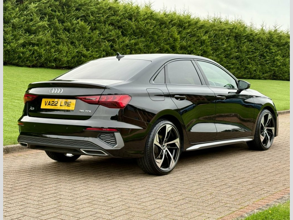 July 2022 Audi A3 Saloon 35 TDI S-Line S-Tronic in Mythos Black. Full Service History. MOT'd to August 2026. Loaded with spec including Full Leather Interior, Virtual Cockpit, Navigation System, Privacy Glass, Black Pack, Bluetooth, DAB Radio, Cruise Control, Multifunctional Steering Wheel, LED Daytime Running Lights, Dual Climate Control, USB Port, Touch Screen Media System etc. Fitted with Brand New 19" Alloys & Tyres (Optional Extra £995) FINANCE AVAILABLE AT KEEN RATES!! Viewing by Appointment Only Please 12v Socket and Storage Compartment in Fr, 18in Alloy Wheels - 5-Arm Dynamic Design, 2 USB-C Ports with Charge and Data Funct, 6 Passive Loudspeakers, Airbags - Driver and Front Passenger wit, Aluminium Interior Elements, Aluminium Window Trims, Anti Theft Locking Wheel Bolts, Anti-Theft Alarm, Audi Connect Emergency Call and Service, Audi Connect Navigation and Infotainment, Audi Drive Select, Audi Pre-Sense Front with Pedestrian and, Audi Smartphone Interface, Audi Virtual Cockpit, Auto Dimming and Frameless Rear View Mir, Automatic Start-Stop System with Recuper, Bluetooth Interface, Body Coloured Door Mirrors, Cloth Headlining in Black, Collision Avoidance Assistant, Cruise Control, DAB D
