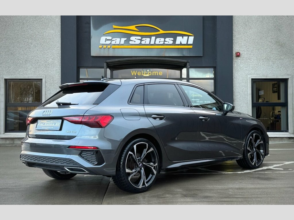2022 AUDI A3 S LINE SPORTBACK 35 TDI 148 BHP 1 Owner from new, 2.0 Diesel Model, Covered 57k miles, Finished in Grey, Key Features include: 19'' Upgraded alloy wheels (£890 Optional extra) Rear Privacy glass Black Edition Styling Rear Parking sensors Full Leather S Line Interior Leather Multifunctional steering wheel Paddle shift Dual Climate control Virtual cockpit DAB Radio / Bluetooth / Sat Nav Apple / Android Car Play AUDI Drive Mode Select ISOFIX Child seat Points And so much more... Call today to arrange a test drive Tailored finance packages available to suit your needs Comprehensive warranty on all cars Trade ins welcome Delivery to North and South of Ireland if required 12v Socket and Storage Compartment in Fr, 18in Alloy Wheels - 5-Arm Dynamic Design, 2 USB-C Ports with Charge and Data Funct, 6 Passive Loudspeakers, Airbags - Driver and Front Passenger wit, Aluminium Interior Elements, Aluminium Window Trims, Anti Theft Locking Wheel Bolts, Anti-Theft Alarm, Audi Connect Emergency Call and Service, Audi Connect Navigation and Infotainment, Audi Drive Select, Audi Pre-Sense Front with Pedestrian and, Audi Smartphone Interface, Audi Virtual Cockpit, Auto Dimming and Frameless Rear View Mir, Automatic Start-Stop System with Recuper, Bluetooth Interface, Body Coloured Door Mirrors, Cloth Headlining in Black, Collision Avoidance Assistant, Cruise Control, DAB D