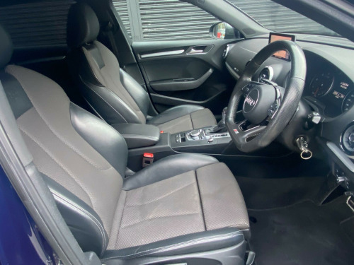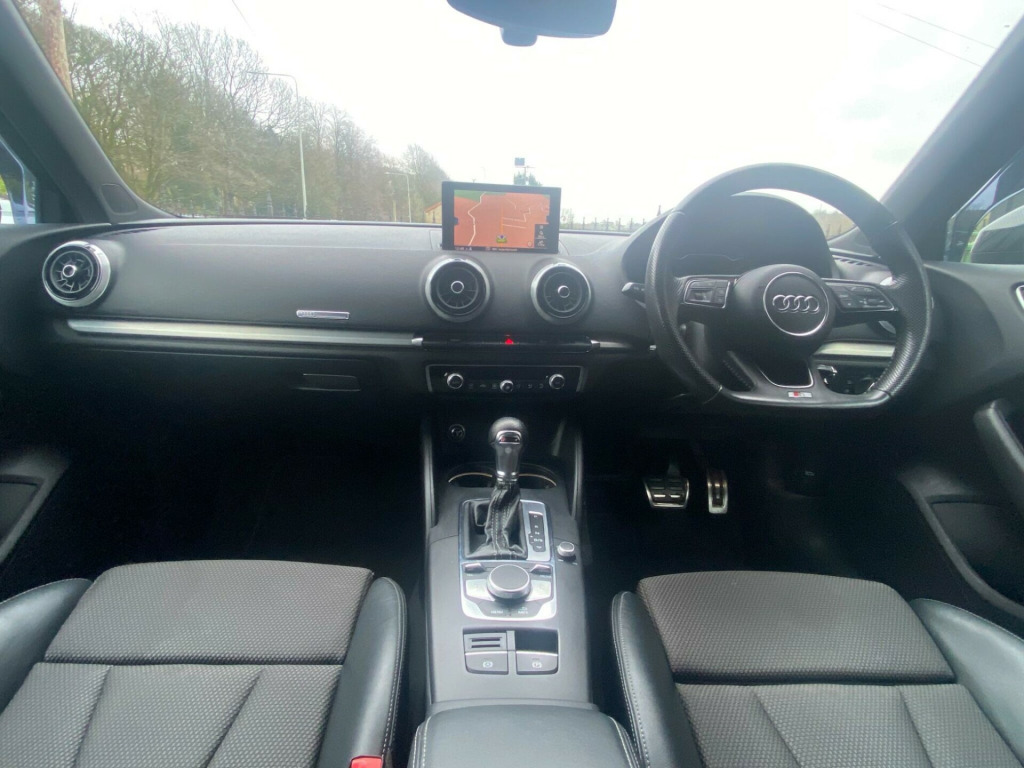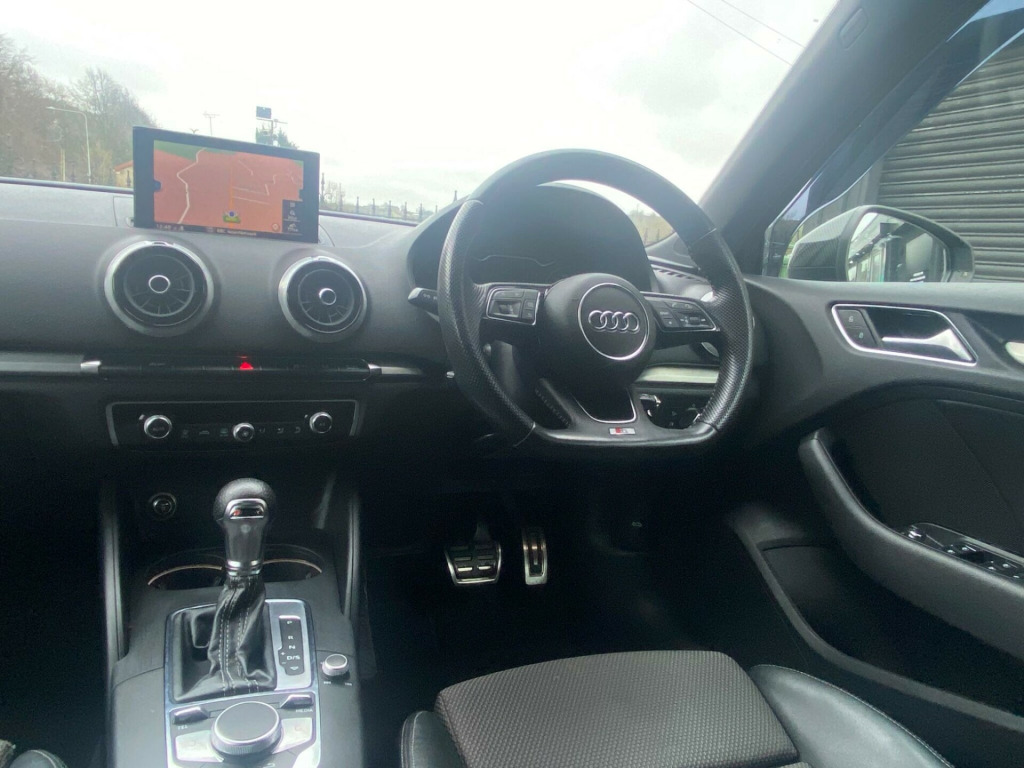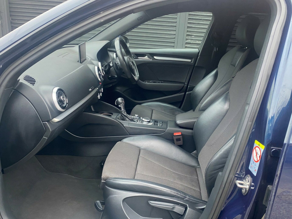 Drive and Smile are pleased to present this 2019 Audi A3 TDI S line along with 2 keys. Which offers a compelling blend of performance and advanced technology. Powered by a 2.0 litre Euro 6 diesel engine, this model delivers an impressive 0-62mph acceleration in just 8.1 seconds, showcasing its dynamic capabilities. The S line trim enhances its sporty appeal, complemented by striking 18 inch alloy wheels in a matt titanium look with a diamond cut finish.Further enhancing the driving experience are several notable features designed for comfort and safety. The Adaptive Cruise Control with Pre Sense Front and Pedestrian Recognition helps maintain a safe distance from the vehicle ahead, while the Audi Parking System Plus, with front and rear sensors, makes manoeuvring effortless. Enjoy an open and airy cabin with the panoramic glass sunroof, and experience superior visibility at night thanks to the Matrix LED exterior lighting pack. The A3 also boasts a generous boot space, making it a practical choice for everyday use and longer journeys. aptive cruise control including pre-sense front with pedestrian recognition, audi parking system plus, headlights - high-beam assist, matrix led exterior lighting pack, extended and crash-active and proactive pedestrian protection, pre-sense basic, rear side airbags, 18in alloy wheels - 10-spoke design matt titanium look with diamond cut finish, 1g6 - space saver spare wheel, privacy glass, space saver spare wheel, door mirrors - heated-electrically adjustable-folding-auto-dimming, panoramic glass sunroof, leather-alcantara - s embossed sports seats - rotor grey with anthracite stitching, sequence cloth-leather - s embossed sports seats - black with rock grey stitching, 18in alloy wheels - 5-parallel spoke design with diamond cut finish, 2 x usb charging ports and 1 x aux-in, 6-airbag system with knee airbag for driver, aluminium interior elements, aluminium window trims, anti theft locking wheel bolts, anti-theft alarm, audi connect, audi connect infotainment services - 3 month trial, audi drive select, audi smartphone interface, audi sound system, auto-dimming rear-view mirror with light and rain sensor, bluetooth interface, body coloured door mirrors, cd drive, chrome-plated exhaust tailpipe trim, cloth headlining in black, colour drivers information system - dis, cruise control, dab digital radio, door mirrors - electrically adjustable and heated with integrated led side indicators, dual-zone electronic climate control, esc - electronic stabilisation control inc abs - asr and edl, electric windows - front and rear, electromechanical parking brake, electromechanical power steering, first aid kit and warning triangle, front centre armrest, front and rear floor mats, heated windscreen washer jets, hill hold assist, isofix child seat mounting and top tether, illuminated door sill trims with s logo, inlays - matt brushed aluminium, led headlights with led rear lights and dynamic rear indicators, led interior light package, lashing points in luggage compartment, mmi navigation - sd card based, mmi radio plus with 7in electrically retractable colour mmi screen, manual seat adjustment, non-smoking package, pedals in stainless steel, rear parking sensors, remote central locking with 2 fold away keys, s line badges on the front wings, s line design body styling, seat belt monitoring, split folding rear seat bench - 60-40 or fully, sport suspension, steering wheel - 3-spoke leather-multifunction-flat bottomed-shift paddles, storage compartments in the door side trims-centre console-under drivers seat, storage package, tool kit, tyre pressure warning light, tyre repair kit, voice control system