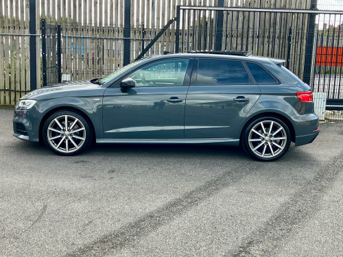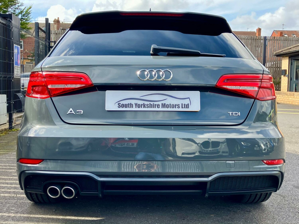 STUNNING RARE AUDI A3 S LINE BLACK EDITION TDI FINISHED IN METALLIC NANO GREY, 2 KEYS. BRAND NEW PIRELLI TYRES ALL ROUND,, SERVICE HISTORY. LOW MILEAGE…. , THE IMPRESSIVE SPECIFICATION INCLUDES:, BANG & OULFSEN SOUND SYSTEM , PANORAMIC TILT/SLIDE ROOF , HEATED SEATS , APPLE CAR PLAY, BLUETOOTH, MEDIA TRANSFER, MMI, SATNAV, ELECTRIC FOLD DOWN SCREEN, CRUISE CONTROL, FLAT BOTTOM STEERING WHEEL, DAB, BRUSHED TITANIUM INLAYS , CLIMATE CONTROL, MULTIFUNCTION STEERING WHEEL, SKI HATCH, FRONT & REAR PARK SENSORS, HEAD LIGHT WASHERS, AUTO WIPERS, AUTO HEADLIGHTS, PHONE CONNECTIVITY, DRLs, SPARE WHEEL WITH ROAD SIDE KIT , ELECTRIC LUMBER SEAT SUPPORT, FITTED MATS PLUS MORE!!, , THIS VEHICLE COMES SUPPLIED WITH 12 MONTHS MOT & 3 MONTHS WARRANTY AS STANDARD. , ******LOW RATE FINANCE AVAILABLE******