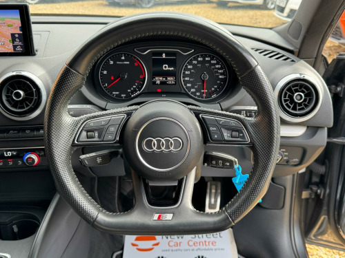 This 2017 Audi A3 TDI Black Edition boasts a clear vehicle history, offering you peace of mind. This stylish hatchback is equipped with a powerful 2.0 litre diesel engine, meeting Euro 6 emissions standards. You'll appreciate the convenience of LED headlights with dynamic rear indicators, a Bluetooth interface for seamless connectivity, and a light and rain sensor that automatically adjusts your headlights. Inside, enjoy the comfort of dual zone electronic climate control, ensuring a pleasant cabin temperature for everyone.The Audi A3 TDI Black Edition offers impressive performance, accelerating from 0 to 62 miles per hour in just 8.6 seconds, demonstrating its capability. This model also features a generous boot space, making it a practical choice for everyday use and longer journeys. These attributes, combined with its refined features, set this Audi A3 apart from other vehicles in its class.. 18in Alloy Wheels - 10-Spoke Design Matt Titanium Look with Diamond Cut Finish, 2 x USB Charging Ports and 1 x AUX-IN, 6-Airbag System with Knee Airbag for Driver, 8 Passive Speakers, Aluminium Interior Elements, Anti Theft Locking Wheel Bolts, Anti-Theft Alarm, Audi Connect Infotainment Services - 3 Month Trial, Audi Drive Select, Audi Smartphone Interface, Audi Sound System, Black Styling Package, Bluetooth Interface, CD Drive, Chrome-Plated Exhaust Tailpipe Trim, Cloth Headlining in Black, Colour Drivers Information System - DIS, Cruise Control, DAB Digital Radio, Door Mirrors - Black Housing, Door Mirrors - Electrically Adjustable and Heated, Dual-Zone Electronic Climate Control, ESC - Electronic Stabilisation Control inc ABS - ASR and EDL, Electric Windows - Front and Rear, Electromechanical Parking Brake, Electromechanical Power Steering, First Aid Kit, Front Centre Armrest, Front and Rear Floor Mats, ISOFIX Child Seat Mounting and Top Tether for Front Passenger and Outer Rear Seats, Illuminated Door Sill Trims with S Logo, Immobiliser, Inlays - Matt Brushed Aluminium, LED Headlights with LED Rear Lights and Dynamic Rear Indicators, LED Interior Light Package, Light and Rain Sensor, Luggage Compartment - Lashing Points x4, MMI Navigation - SD Card Based, MMI Radio Plus with 7in Electrically Retractable Colour MMI Screen, Manual Front Seat Adjustment, Non-Smoking Package, Pedals in Stainless Steel, Pollen Filter, Privacy Glass, Remote Central Locking with 2 Fold Away Keys, S Line Design Body Styling, S Line Roof Spoiler, Seat Belt Monitoring, Seats - Split Folding Rear - 60-40, Space Saver Spare Wheel, Sport Suspension, Steering Wheel - 3-Spoke Leather-Multifunction-Flat Bottomed, Storage Compartments in the Door Side Trims-Centre Console-Under Drivers Seat, Storage Package, Tool Kit and Car Jack, Tyre Pressure Monitoring System, Voice Control, Warning Triangle.