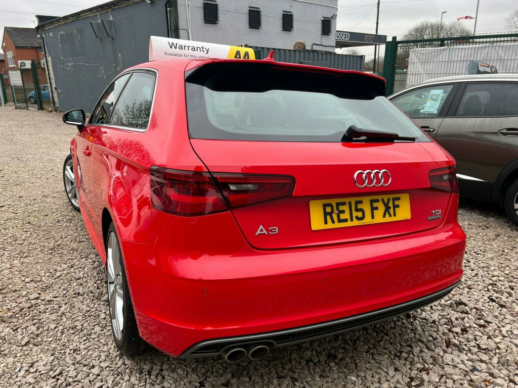 This 2015 Audi A3 2.0 TDI S line S Tronic quattro Euro 6 (s/s) 3dr Hatchback is currently available for £7,495 with Diesel engine and Automatic gearbox. For more information or to arrange a viewing, click here to send us an email using form below.