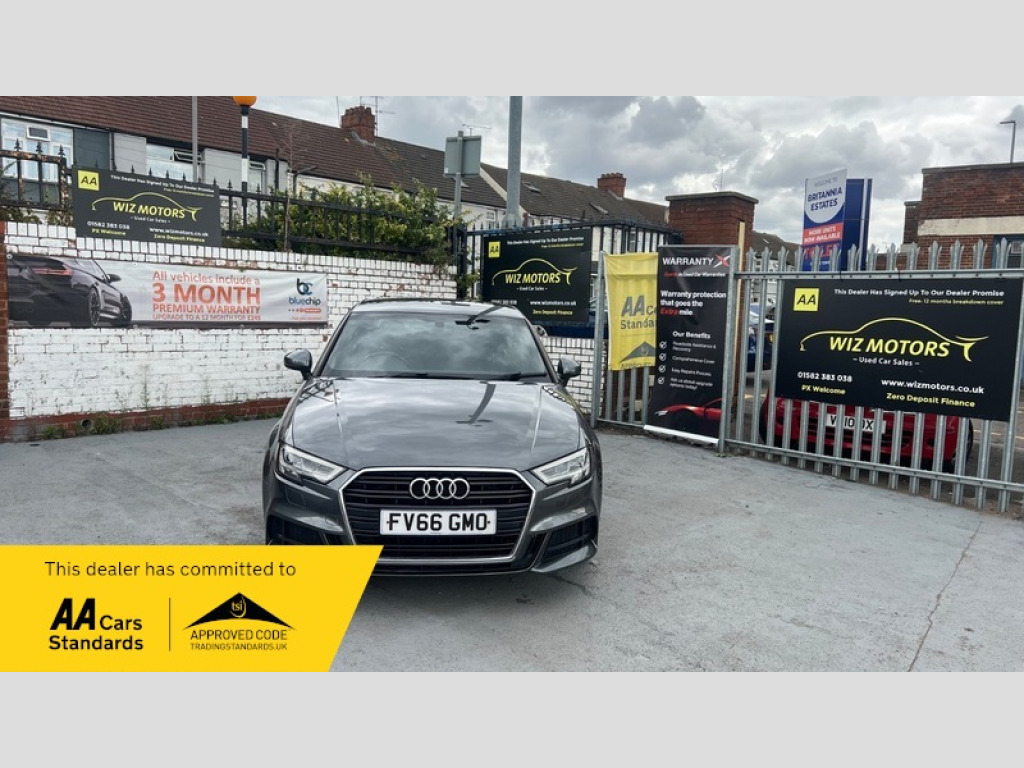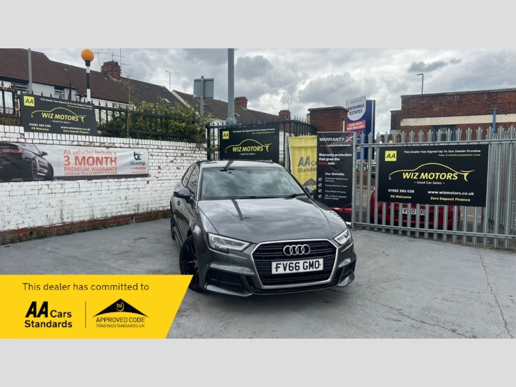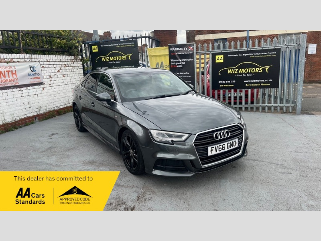 Dear customers let me introduce you to our beautiful Audi A3 2.0 TDI S line Saloon 4dr Diesel Manual Euro 6 (s/s) (150 ps)It has Low Mileage. Good Condition. HPI Clear. MOT 16/09//26. Car will come with Long MOT. It Has Service History and 1Previous keeper. Comes with warranty, 2keys and Free 12MONTHS roadside recovery. You are in safe Hands as we have signed our dealer promise with AA. Delivery on Your Doorstep, Credit & Debit Cards Accepted. Part exchange welcome.   We Offer Zero Deposit Finance with Rates starting from 5.5% Flat Rate ( subject to status) and deal with different panel of Lenders to get you the best Possible Rates to suit your budget. We can arrange your finance Online, over the phone or in person. You can Also apply finance directly on Our website at www.wizmotors.co.uk or call  us on 01582 383038  We offer Part Exchange Valuations and give you the best possible Price for you Part Exchange car. wiz motors ltd. Provides high standard of Customer care over 06 Years. Our Friendly and Experienced Staff are always here to Help you with your finance packages, settlements, part exchange valuations and all aspects of your purchase to help making your purchase a very pleasant experience and make your next purchase a memorable one.   We prepare our vehicles to a high standard. All our cars are mechanically inspected by our experienced engineers and HPI checked. Full HPI report, vehicle comes with warranty, Free 12MONTHS roadside recovery with AA. 5days Drive away Insurance can be arranged (Charges Apply). All Dealer facilities available. We accept all major debit and credit cards. We deliver cars Nationwide to your door step.  The vehicle specification displayed may not be exact for this vehicle. Please contact us to confirm the precise specifications. Always check Outstanding recalls. Please ask the salesman if the recall will be carried out before you make your purchase.  Calll 01582 383038, for any further details, Our address is Wizmotors ltd.Front Parking Yard, Britania Estate,Leagrave Road. Luton, Beds. LU3 1RJ,  Opposite 320 LEAGRAVE ROAD, Luton, LU31Rj  Open 7days. Vehicle admin fee £99  Note. At Wiz Motors, we check every vehicle for any outstanding recalls. This can be found on https://www.gov.uk/check-mot-history   Before purchasing a vehicle from our dealership, please check the car on the link above for your own piece of mind. Any recall is repaired free of charge by the manufacture. Give us a call if you find any outstanding recall so we can book this vehicle with manufacturer to sort it out 12V Power Socket, 18in Alloy Wheels, ABS, Adjustable Steering, Air Conditioning, Alarm, Alloy Wheels, Automatic Headlight Levelling, Automatic Rearview Mirror Dimming, Bluetooth, Body Coloured Bumpers, Brake Assist, CD Multichanger, CD Player, Cassette Player, Catalytic Converter, Central Locking, Climate Control, Cruise Control, Cup Holders, DVD Player, Day/night Rearview Mirror, Daytime Running Lights, ESP, Electric Adjustable Seats, Electric Folding Mirrors, Electric Heated Seats, Electric Mirrors, Electric Windows, Engine Immobiliser, Folding Rear Seats, Front Airbags, Front Fog Lights, Heated Door Mirrors, Heated Rear Windshield, Heated Windscreen, ISOFix Anchor Point, Keyless Door Locks, LED Lights, Lane Assist, Leather Seats, MOT, MP3, MP3 Player Connection, Panoramic Sunoof, Parking Assistance, Parking Sensors, Particule Filter, Power Assisted Steering, Privacy/Tinted Glass, Radio, Rain Sensor, Reading Lights, Rear Air Vents, Rear Airbags, Rear Spoiler, Safety Belts, Safety Belts Rear, Satellite Navigation, Service History, Side Impact Airbags, Spare Wheel, Speakers, Speed Limiter, Sports Suspension, Start Stop System, Steering Wheel Controls, Surround Sound System, Traction Control, Tuning, V5 Registration Document
