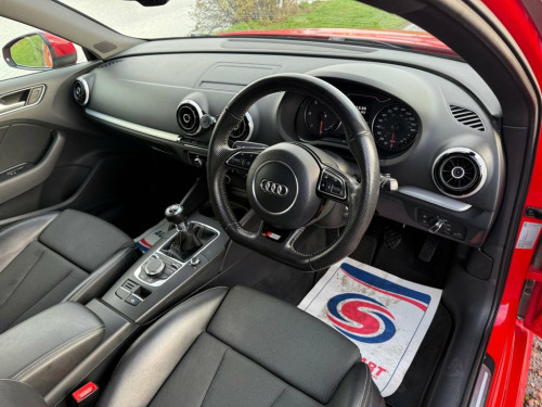 WE ARE DELIGHTED TO OFFER YOU FOR SALE THIS BRILLIANT VALUE FOR MONEY AUDI A3 S-LINE 2.0 TDI. THIS FANTASTIC EXAMPLE COMES WITH A GREAT SPEC THAT INCLUDES SILVER ALLOYS, S-LINE PACK, PRIVACY GLASS, HALF LEATHER SEATS, 6-SPEED MANUAL, DAB RADIO, BLUETOOTH AUDIO, DUAL ZONE CLIMATE CONTROL WITH AIRCON, SAT NAV CAPABILITY, CRUISE CONTROL AND MUCH MUCH MORE! FOR YOUR ADDED PEACE OF MIND SHE WILL BE PROVIDED WITH A 6-MONTH WARRANTY AS STANDARD AS WELL AS A FULL HEALTH CHECK PRIOR TO DELIVERY. IF YOU ARE INTERESTED PLEASE GET IN CONTACT WITH US AS SOON AS POSSIBLE AS SHE WON'T HANG AROUND WITH US FOR LONG! 12V Power Socket - Centre Console, 12V Power Socket - Rear, 18in Alloy Wheels - 5-Parallel Spoke Des, ABS - Anti-Lock Braking System, Active Bonnet, Adaptive Brake Lights, Air Vent Sleeves - Aluminium Look, Airbags - Driver, Airbags - Drivers Knee, Airbags - Front Passenger, Airbags - Front Side, Airbags - Head Level Side For Front and , Alarm - Thatcham Category 1, Aluminium Interior Elements, AMI - Audi Music Interface, Anti Theft Locking Wheel Bolts, ASR - Anti Slip Regulation, Audi Drive Select, Car Jack, Child Locks - Manual, Chrome-Plated Exhaust Tailpipe Trim, Cloth Headlining in Black, Coat Hooks - B Pillar - Both Sides, Colour Drivers Information System - DIS, Cup Holders - Rear x2,