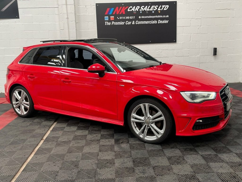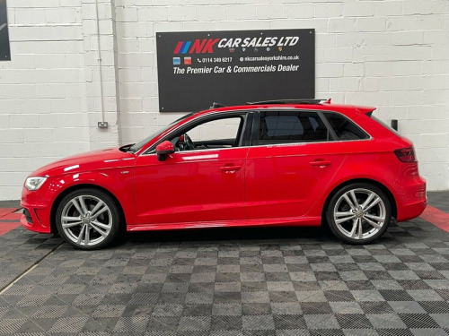 2015  AUDI A3 2.0 TDI S line Sportback 5dr is offered to you for sale in Sheffield, South Yorkshire, finished in red this used  AUDI A3 2.0 TDI S line Sportback 5dr is one of many handpicked used cars that used car dealer, NK Car Sales, Sheffield, South Yorkshire have available for sale.  We are a family-owned company that prides itself on the quality of vehicles and all of them are carefully chosen, handpicked examples that are always HPI Clear for your peace of mind. We have an indoor showroom where you can view any potential purchase in total comfort and away from the elements. We offer all the usual used Car Dealer facilities such as Low-rate finance and extended warranties and operate a no-pressure environment where you can relax and enjoy good old-fashioned service with a smile.    12V Power Socket - Centre Console, 12V Power Socket - Rear, 18in Alloy Wheels - 5-Parallel Spoke Des, ABS - Anti-Lock Braking System, Active Bonnet, Adaptive Brake Lights, Air Vent Sleeves - Aluminium Look, Airbags - Driver, Airbags - Drivers Knee, Airbags - Front Passenger, Airbags - Front Side, Airbags - Head Level Side For Front and , Alarm - Thatcham Category 1, Aluminium Interior Elements, AMI - Audi Music Interface, Anti Theft Locking Wheel Bolts, ASR - Anti Slip Regulation, Audi Drive Select, Car Jack, Chrome-Plated Exhaust Tailpipe Trim, Cloth Headlining in Black, Coat Hooks - B Pillar - Both Sides, Colour Drivers Information System - DIS, Cup Holders - Rear x2, Cup Holders - x2 in C
