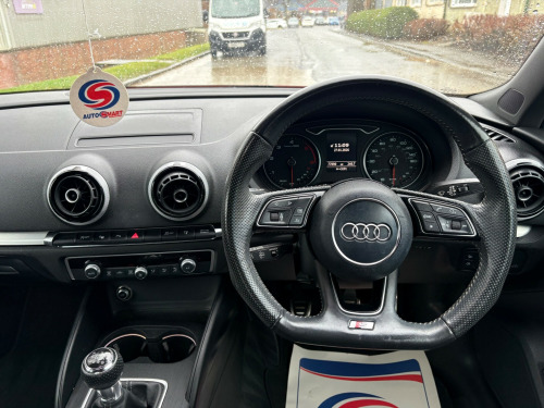 CALL, EMAIL OR WHATSAPP TO ARRANGE A VIEWING OR DISCUSS FINANCE OPTIONSIncluded when buying from Forsyth Street Cars:Minimum 10 Months MOTAn up-to date Oil Service1 Month extendable warranty with up-to 3 years cover5 Star Customer ServiceBreakdown cover options Driveaway Insurance available HPI CLEAR in alloy wheels - 5-parallel spoke design with diamond cut finish, aluminium window trims, anti theft locking wheel bolts, body coloured door mirrors, chrome-plated exhaust tailpipe trim, door mirrors - electrically adjustable and heated, electric windows - front and rear, s line design body styling, s line roof spoiler, space saver spare wheel, 2 x usb charging ports and 1 x aux-in, 8 passive speakers, audi connect infotainment services - 3 month trial, audi smartphone interface, bluetooth interface, cd drive, dab digital radio, mmi navigation - sd card based, mmi radio plus with 7in electrically retractable colour mmi screen, 6-airbag system with knee airbag for driver, anti-theft alarm, esc - electronic stabilisation control inc abs - asr and edl, electromechanical parking brake, first aid kit, isofix child seat mounting and top tether for front passenger and outer rear seats, immobiliser, remote central locking with 2 fold away keys, seat belt monitoring, warning triangle, aluminium interior elements, cloth headlining in black, dual-zone electronic climate control, front centre armrest, front and rear floor mats, illuminated door sill trims with s logo, inlays - matt brushed aluminium, led interior light package, luggage compartment - lashing points x4, manual front seat adjustment, non-smoking package, pedals in stainless steel, pollen filter, seats - split folding rear - 60-40, steering wheel - 3-spoke leather-multifunction-flat bottomed, storage compartments in the door side trims-centre console-under drivers seat, storage package, tool kit and car jack, audi drive select, colour drivers information system - dis, cruise control, electromechanical power steering, sport suspension, tyre pressure monitoring system, voice control, led headlights with led rear lights and dynamic rear indicators, light and rain sensor