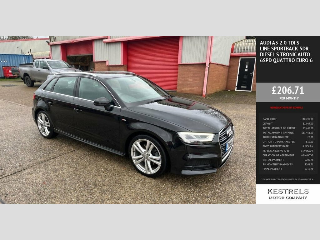 This 2016 Audi A3 2.0 TDI S line Sportback 5dr Diesel S Tronic Auto Hatchback is currently available for £10,495 in Halstead Essex with Diesel engine and Automatic gearbox. For more information or to arrange a viewing, click here to send us an email using form below.