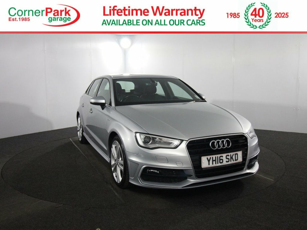 Comprehensive service history with 6 services. Last serviced at 41,273 miles in February 2025. Introducing the 2016 Audi A3 2.0 TDI S line Sportback S Tronic, a premium 5-door hatchback delivering impressive performance with executive style. Finished in S line body styling with 18-inch 5-parallel spoke alloy wheels, LED daytime running lights, and aluminium window surrounds, this Euro 6 diesel automatic blends sporty looks with a refined, practical design. Bi-Xenon Plus headlights, twin exhaust tailpipes, and signature S line badges further highlight its dynamic character for drivers who value both quality and presence. Powered by a responsive 2.0-litre TDI diesel engine producing 150ps, paired with Audi's renowned S Tronic dual-clutch automatic, the A3 S line offers smooth acceleration, excellent fuel efficiency, and effortless motorway cruising. Key features include Audi Drive Select, dual-zone electronic climate control, MMI satellite navigation with Bluetooth and DAB radio, a colour driver information display, and cruise control. Safety is comprehensive with multiple airbags (including driver's knee airbag), ESP, ISOFIX mounting, secondary collision brake assist, and a Thatcham Category 1 alarm. Inside, the S line cabin provides maximum comfort and style with front sports seats featuring extendable thigh support and height adjustment, a leather flat-bottomed steering wheel with gear shift paddles, aluminium interior trims, and split-folding rear seats for extr 12V Power Socket - Centre Console, 12V Power Socket - Rear, 18in Alloy Wheels - 5-Parallel Spoke Des, 2 x SDXC Card Readers, ABS - Anti-Lock Braking System, Adaptive Brake Lights, Airbags - Driver, Airbags - Drivers Knee, Airbags - Front Passenger, Airbags - Front Side, Airbags - Head Level Side For Front and , Alarm - Thatcham Category 1, Aluminium Interior Elements, AMI - Audi Music Interface, Anti Theft Locking Wheel Bolts, ASR - Anti Slip Regulation, Audi Drive Select, Audio Output - 80 Watts, Car Jack, Child Locks - Manual, Cloth Headlining in Black, Coat Hooks - B Pillar - Both Sides, Colour Drivers Information System - DIS, Cup Holders - x2 in Centre Console, DAB Digital Radio, Displa