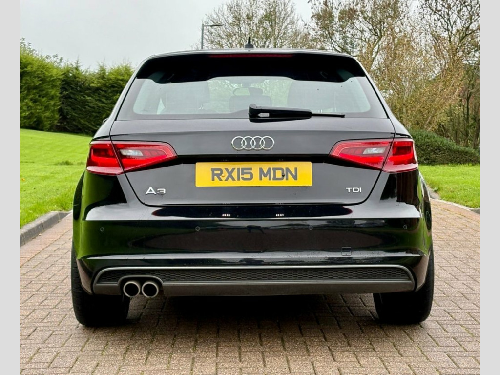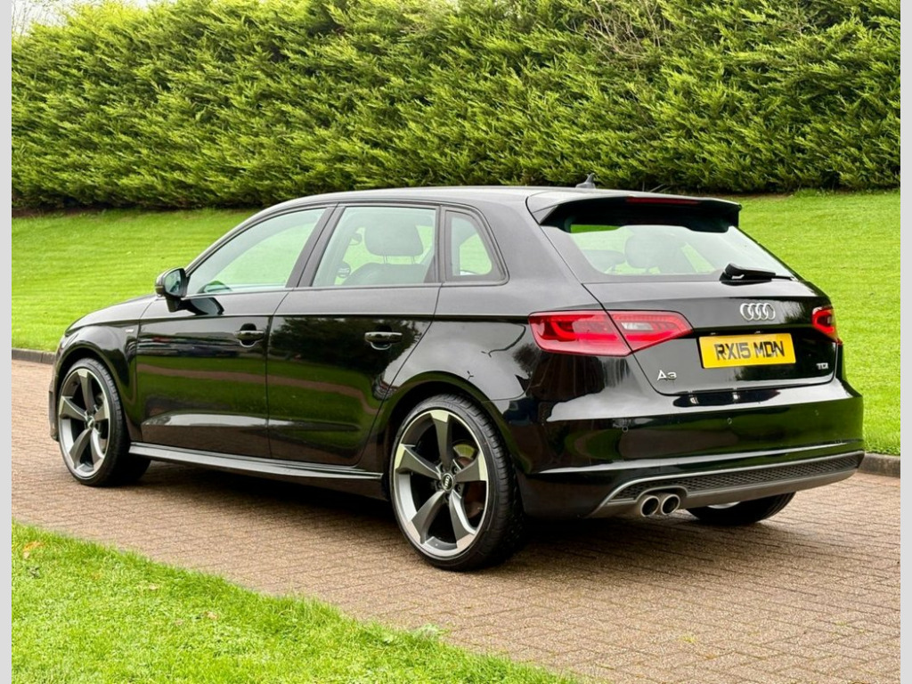 March 2015 Audi A3 2.0TDI S-Line S-Tronic in Mythos Black. Service History & MOT'd to September 2026. Loaded with spec including Central Armrest, Flat Bottom Steering Wheel, Navigation System Enabled, Bluetooth, Multifunctional Steering Wheel, Black Pack etc. Fitted with Brand New 19" Alloys & Tyres (Optional Extra £995) FINANCE AVAILABLE AT KEEN RATES!! Viewing by Appointment Only Please. 12V Power Socket - Centre Console, 12V Power Socket - Rear, 18in Alloy Wheels - 5-Parallel Spoke Des, ABS - Anti-Lock Braking System, Active Bonnet, Adaptive Brake Lights, Air Vent Sleeves - Aluminium Look, Airbags - Driver, Airbags - Drivers Knee, Airbags - Front Passenger, Airbags - Front Side, Airbags - Head Level Side For Front and , Alarm - Thatcham Category 1, Aluminium Interior Elements, AMI - Audi Music Interface, Anti Theft Locking Wheel Bolts, ASR - Anti Slip Regulation, Audi Drive Select, Car Jack, Chrome-Plated Exhaust Tailpipe Trim, Cloth Headlining in Black, Coat Hooks - B Pillar - Both Sides, Colour Drivers Information System - DIS, Cup Holders - Rear x2, Cup Holders - x2 in C