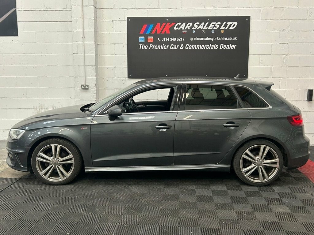 2015 AUDI A3 2.0 TDI S line Sportback 5dr is offered to you for sale in Sheffield, South Yorkshire, finished in grey this AUDI A3 2.0 TDI S line Sportback 5dr is one of many handpicked used cars that used car dealer, NK Car Sales, Sheffield, South Yorkshire have available for sale. We are a family-owned company that prides itself on the quality of vehicles and all of them are carefully chosen, handpicked examples that are always HPI Clear for your peace of mind. We have an indoor showroom where you can view any potential purchase in total comfort and away from the elements. We offer all the usual used Car Dealer facilities such as Low-rate finance and extended warranties and operate a no-pressure environment where you can relax and enjoy good old-fashioned service with a smile. 12V Power Socket - Centre Console, 12V Power Socket - Rear, 18in Alloy Wheels - 5-Parallel Spoke Des, ABS - Anti-Lock Braking System, Active Bonnet, Adaptive Brake Lights, Air Vent Sleeves - Aluminium Look, Airbags - Driver, Airbags - Drivers Knee, Airbags - Front Passenger, Airbags - Front Side, Airbags - Head Level Side For Front and , Alarm - Thatcham Category 1, Aluminium Interior Elements, AMI - Audi Music Interface, Anti Theft Locking Wheel Bolts, ASR - Anti Slip Regulation, Audi Drive Select, Car Jack, Chrome-Plated Exhaust Tailpipe Trim, Cloth Headlining in Black, Coat Hooks - B Pillar - Both Sides, Colour Drivers Information System - DIS, Cup Holders - Rear x2, Cup Holders - x2 in C