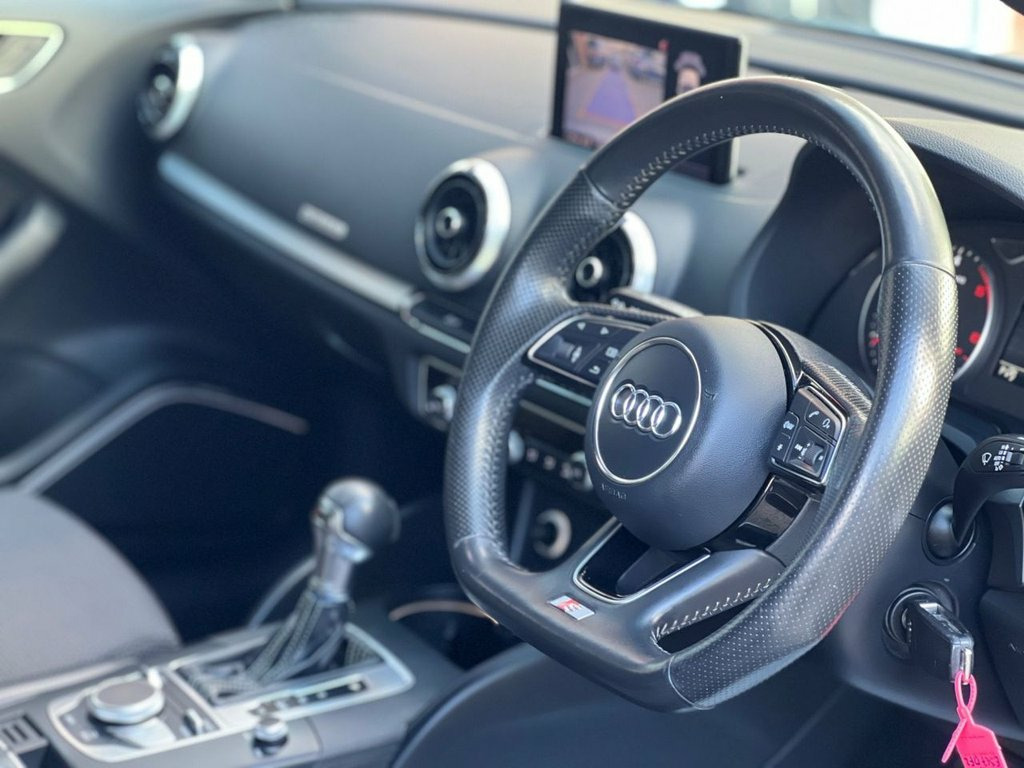 This 2017 Audi A3 TDI S line wrapped in Nardo Grey presents an exceptional opportunity with its remarkably low mileage of just 57,000 miles with full service history. This four wheel drive model boasts a powerful 2.0 litre diesel engine, meeting Euro 6 emission standards. Its S line trim enhances its sporty appeal, while the Matrix LED Exterior Lighting Pack, including advanced LED headlights, ensures excellent visibility. The Comfort and Sound Package adds further refinement with a luxury branded sound system, heated seats, and convenient front and rear parking sensors. You'll also appreciate the heated, electrically adjustable, folding, and auto dimming door mirrors, alongside the integrated Bluetooth interface for seamless connectivity. The Audi A3 TDI S line offers a dynamic driving experience, highlighted by its impressive 0-60mph acceleration time of just 6.8 seconds. This performance, combined with its four wheel drive system, sets it apart from many similar vehicles. Practicality is also a key strength, with a notably large boot space perfect for luggage or shopping. The inclusion of LED headlights with dynamic rear indicators further enhances both safety and the vehicle's modern aesthetic, demonstrating a thoughtful combination of performance, comfort, and advanced technology. Services carried out at 7239, 12384, 29967, 38624 and 49642 miles. ULEZ COMPLIANT Nardo Grey Wrap, Sequence Cloth-Leather - S Embossed Spor, Door Mirrors - Heated-Electrically Adjus, Matrix LED Exterior Lighting Pack, Comfort and Sound Package, 18in Alloy Wheels - 5-Parallel Spoke Des, 2 x USB Charging Ports and 1 x AUX-IN, 6-Airbag System with Knee Airbag for Dri, 8 Passive Speakers, Aluminium Interior Elements, Aluminium Window Trims, Anti Theft Locking Wheel Bolts, Anti-Theft Alarm, Audi Connect Infotainment Services - 3 M, Audi Drive Select, Audi Hill Hold Assist, Audi Smartphone Interface, Auto-Dimming Rear-View Mirror with Light, Bluetooth Interface, Body Coloured Door Mirrors, CD Drive, Chrome-Plated Exhaust Tailpipe Trim, Cloth Headlining in Black, Colour Drivers