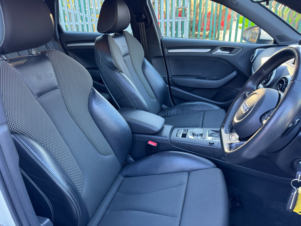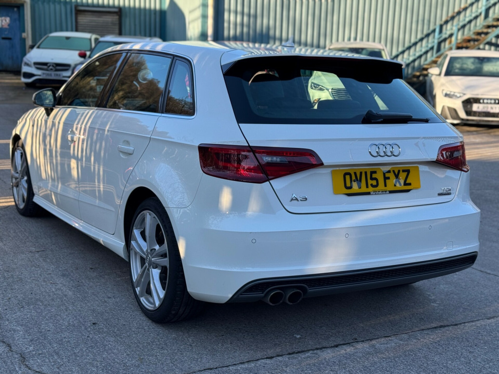 This 2015 Audi A3 2.0 TDI S line Sportback 5dr Diesel S Tronic quattro Euro 6 (s/s) (184 ps) is a stylish and efficient hatchback with 105226 miles on the clock. With a MOT valid until 21/09/2026 and being ULEZ compliant, this car is a practical and environmentally friendly choice. Offering 5 seats and 5 doors, it provides ample space for passengers and cargo. The interior features convenient amenities such as 12V Power Sockets in the centre console and rear, 2 SDXC Card Readers, and the AMI - Audi Music Interface for entertainment. With a powerful 80 Watt audio output, this car ensures a enjoyable driving experience. With its sleek design and reliable diesel engine, this Audi A3 is the ideal choice for those seeking a blend of luxury and economy in their vehicle.UK delivery available.Part exchange welcome.Extended warranty options available.AA standards approved dealership.Trading standards approved dealership.Autotrader highly rated dealership. v power socket - centre console, 12v power socket - rear, 2 x sdxc card readers, ami - audi music interface, audio output - 80 watts, dab digital radio, display screen colour - 5.8in, mmi radio, mobile telephone preparation - bluetooth interface, preparation for sd card-based navigation system, speakers x8, usb connection, 18in alloy wheels - 5-parallel spoke design partly polished, anti theft locking wheel bolts, door mirrors - body coloured with integrated led indicators, door mirrors - electrically adjustable and heated, electric windows - front and rear, exhaust tailpipe - twin, fog lights - high gloss black surrounds, heated rear windscreen, heated windscreen washer jets, led rear indicators, model and engine technology badges at rear, radiator grille - high gloss black, s line badges on front wings, s line body styling, s line design front bumper-rear diffuser-side sills and roof spoiler, space saver spare wheel, window surrounds - aluminium, abs - anti-lock braking system, asr - anti slip regulation, adaptive brake lights, airbags - driver, airbags - drivers knee, airbags - front passenger, airbags - front side, airbags - head level side for front and rear, alarm - thatcham category 1, child locks - manual, ebd - electronic brakeforce distribution, esp - electronic stability programme, electromechanical parking brake, first aid kit, front passenger airbag deactivation switch, hydraulic brake assist, isofix child seat mounting for front passenger and rear outer seats, immobiliser, remote central locking with 2 fold away keys, seat belt reminder for all seats, secondary collision brake assist, warning triangle, aluminium interior elements, car jack, cloth headlining in black, coat hooks - b pillar - both sides, door sill trims with s line logo, dual-zone electronic climate control, front centre armrest, front sports seats, front and rear floor mats, gear knob - perforated leather, glovebox - illuminated, illuminated vanity mirrors, inlays - matt brushed aluminium, interior elements - air vents - aluminium, interior elements - frame around the inside door handle - aluminium, interior elements - glove compartment - aluminium, interior elements - window control switches - aluminium, interior lighting, luggage compartment - illuminated, luggage compartment - lashing points x4, luggage compartment - side net, pollen filter, rear parcel shelf removable, seats - adjustment for cushion depth, seats - extendable thigh support, seats - front height adjustment, seats - split folding rear - 60-40, smoking package, steering wheel - 3-spoke leather-flat bottomed-shift paddles, steering wheel - gear shift paddles, steering wheel - height and reach adjustable, steering wheel - multi-function, storage compartment - centre console, storage compartment under rear seat, storage compartments - door side trims, storage net in front passenger footwell and front seat backrests, storage and luggage package, sun visors - with covered vanity mirrors, tool kit, audi drive select, colour drivers information system - dis, edl - electronic differential lock, electromechanical power steering, rest recommendation system, sport suspension, tyre pressure monitoring system, voice control, washer fluid level indicator, front fog lights, headlights - automatic dynamic range control, headlights - bi-xenon plus, headlights washers, led daytime running lights, led rear lights