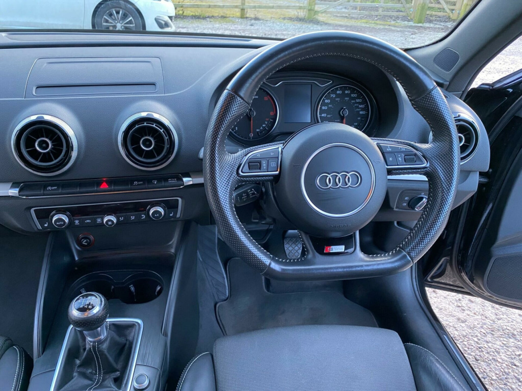 Boasting a clear vehicle history and having had only two owners, this 2014 Audi A3 TDI S line presents a compelling proposition. Powered by a robust 2.0 litre diesel engine, this S line trim model offers an impressive 0-62mph acceleration in just 8.7 seconds. You can drive with confidence knowing the MOT is valid until August 2026, and a 6 month warranty is included for your peace of mind. While the service history is partial, the vehicle history check is clear, and the large boot space provides ample practicality for your needs.This Audi A3 comes equipped with desirable features that enhance your driving experience. Enjoy crystal clear audio with the DAB Digital Radio and stay connected on the go with the Bluetooth interface for mobile telephone preparation. The Dual-Zone Electronic Climate Control ensures comfort for all occupants, while the Bi-Xenon Plus headlights provide excellent visibility. These features, combined with its strong performance and practicality, set this Audi A3 apart from other vehicles in its class.. 12V Power Socket - Centre Console, 12V Power Socket - Rear, 18in Alloy Wheels - 5-Parallel Spoke Design Partly Polished, ABS - Anti-Lock Braking System, AMI - Audi Music Interface, ASR - Anti Slip Regulation, Active Bonnet, Adaptive Brake Lights, Air Vent Sleeves - Aluminium Look, Airbags - Driver, Airbags - Drivers Knee, Airbags - Front Passenger, Airbags - Front Side, Airbags - Head Level Side For Front and Rear, Alarm - Thatcham Category 1, Aluminium Interior Elements, Anti Theft Locking Wheel Bolts, Audi Drive Select, Car Jack, Child Locks - Manual, Chrome-Plated Exhaust Tailpipe Trim, Cloth Headlining in Black, Coat Hooks - B Pillar - Both Sides, Colour Drivers Information System - DIS, Cup Holders - Rear x2, Cup Holders - x2 in Centre Console, DAB Digital Radio, Daytime Running Lights, Display Screen Colour - 5.8in, Door Mirrors - Body Coloured with Integrated LED Indicators, Door Mirrors - Electrically Adjustable and Heated, Door Sill Trims with S Line Logo, Dual-Zone Electronic Climate Control, EBD - Electronic Brakeforce Distribution, EDL - Electronic Differential Lock, ESP - Electronic Stability Programme, Electric Windows - Front and Rear, Electromechanical Parking Brake, Electromechanical Power Steering, Exhaust Tailpipe - Chrome Plated, Exhaust Tailpipe - Twin, First Aid Kit, Fog Lights - High Gloss Black Surrounds, Front Centre Armrest, Front Fog Lights, Front Passenger Airbag Deactivation Switch, Front Sports Seats, Front and Rear Floor Mats, Gear Knob - Perforated Leather, Halogen Headlights, Headlights - Automatic Dynamic Range Control, Headlights - Bi-Xenon Plus, Headlights Washers, Heated Rear Windscreen, Heated Windscreen Washer Jets, Height Adjustable Boot Floor, Hydraulic Brake Assist, ISOFIX Child Seat Mounting for Front Passenger and Rear Outer Seats, Illuminated Vanity Mirrors, Inlays - Matt Brushed Aluminium, Interior Lighting, LED Daytime Running Lights, LED Rear Indicators, LED Rear Lights, Luggage Compartment - Lashing Points x4, Luggage Compartment - Side Net, MMI Radio, Mobile Telephone Preparation - Bluetooth Interface, Multi Collision Brake Assist, Preparation for SD Card-Based Navigation System, Radiator Grille - High Gloss Black, Rear Parcel Shelf Removable, Remote Central Locking with 2 Fold Away Keys, Rest Recommendation System, Roof Spoiler - Painted in Body Colour with Aerodynamic Inserts in High-Gloss Black at the Side, S Line Badges on Wings, S Line Body Styling, S Line Design Front and Rear Bumpers Side Grilles and Dffusers in Platinum Grey, S line Design Front Bumper-Rear Diffuser-Side Sills and Roof Spoiler, SDHC Card Reader x2, Seat Belt Reminder for All Seats, Seats - Convenience Entry - Enhanced Front Folding Function, Seats - Front Height Adjustment, Seats - Split Folding Rear - 60-40, Secondary Collision Brake Assist, Smoking Package, Space Saver Spare Wheel, Speakers x8, Spoiler - Body Coloured, Spoiler - Roof, Sport Suspension, Steering Wheel - Height and Reach Adjustable, Steering Wheel - Multi-function, Steering Wheel - Multifunction - Flat Bottomed, Storage Compartment Under Rear Seat, Storage Compartments in the Door Side Trims-Centre Console-Under Front Passenger Seat, Storage Net in Front Passenger Footwell and Front Seat Backrests, Storage and Luggage Package, Sun Visors - with Covered Vanity Mirrors, Tool Kit, USB Connection, Voice Control - Navigation, Warning Triangle, Washer Fluid Level Indicator, Window Surrounds - Aluminium. Part service history
