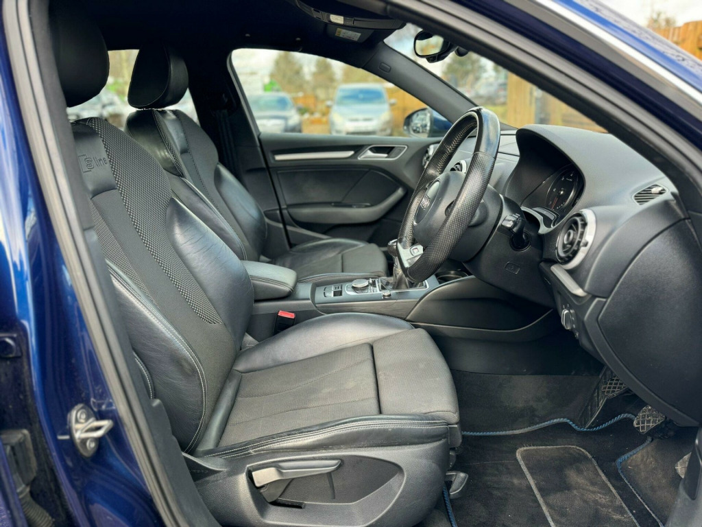 This 2014 Audi A3 TDI S line presents a compelling proposition with its remarkably low mileage for its age, having covered just 100,000 miles. This particular example boasts the desirable S line trim, powered by an efficient 2.0 litre diesel engine that meets Euro 6 emissions standards. Inside, you'll find the convenience of Mobile Telephone Preparation with a Bluetooth interface, allowing for seamless connectivity. The A3 also features Bi-Xenon Plus headlights for enhanced visibility and Dual-Zone Electronic Climate Control to ensure comfort for all occupants.The practicality of this Audi A3 is further enhanced by its generous boot space, offering ample room for luggage or shopping. Performance is also a strong point, with the 2.0 litre diesel engine capable of accelerating from 0 to 62 miles per hour in a brisk 8.6 seconds. These attributes, combined with the refined engineering expected from Audi, position this A3 TDI S line as a superior choice for those seeking a blend of performance, comfort, and everyday usability. v power socket - centre console, 12v power socket - rear, 18in alloy wheels - 5-parallel spoke design partly polished, abs - anti-lock braking system, ami - audi music interface, asr - anti slip regulation, active bonnet, adaptive brake lights, air vent sleeves - aluminium look, airbags - driver, airbags - drivers knee, airbags - front passenger, airbags - front side, airbags - head level side for front and rear, alarm - thatcham category 1, aluminium interior elements, anti theft locking wheel bolts, audi drive select, car jack, chrome-plated exhaust tailpipe trim, cloth headlining in black, coat hooks - b pillar - both sides, colour drivers information system - dis, cup holders - rear x2, cup holders - x2 in centre console, dab digital radio, daytime running lights, display screen colour - 5.8in, door mirrors - body coloured with integrated led indicators, door mirrors - electrically adjustable and heated, door sill trims with s line logo, dual-zone electronic climate control, ebd - electronic brakeforce distribution, edl - electronic differential lock, esp - electronic stability programme, electric windows - front and rear, electromechanical parking brake, electromechanical power steering, exhaust tailpipe - twin, first aid kit, fog lights - high gloss black surrounds, front centre armrest, front fog lights, front passenger airbag deactivation switch, front sports seats, front and rear floor mats, gear knob - perforated leather, headlights - automatic dynamic range control, headlights - bi-xenon plus, headlights washers, heated rear windscreen, heated windscreen washer jets, height adjustable boot floor, hydraulic brake assist, isofix child seat mounting for front passenger and rear outer seats, illuminated vanity mirrors, inlays - matt brushed aluminium, interior lighting, led daytime running lights, led rear indicators, led rear lights, luggage compartment - lashing points x4, luggage compartment - side net, mmi radio, mobile telephone preparation - bluetooth interface, model and engine technology badges at rear, multi collision brake assist, preparation for sd card-based navigation system, radiator grille - high gloss black, rear parcel shelf removable, remote central locking with 2 fold away keys, rest recommendation system, s line badges on front wings, s line body styling, s line design front and rear bumpers side grilles and dffusers in platinum grey, s line design front bumper-rear diffuser-side sills and roof spoiler, sdhc card reader x2, seat belt reminder for all seats, seats - convenience entry - enhanced front folding function, seats - front height adjustment, seats - split folding rear - 60-40, secondary collision brake assist, smoking package, space saver spare wheel, speakers x8, sport suspension, steering wheel - height and reach adjustable, steering wheel - multi-function, steering wheel - multifunction - flat bottomed, storage compartment under rear seat, storage compartments in the door side trims-centre console-under front passenger seat, storage net in front passenger footwell and front seat backrests, storage and luggage package, sun visors - with covered vanity mirrors, tool kit, tyre pressure monitoring system, usb connection, voice control - navigation, warning triangle, washer fluid level indicator, window surrounds - aluminium