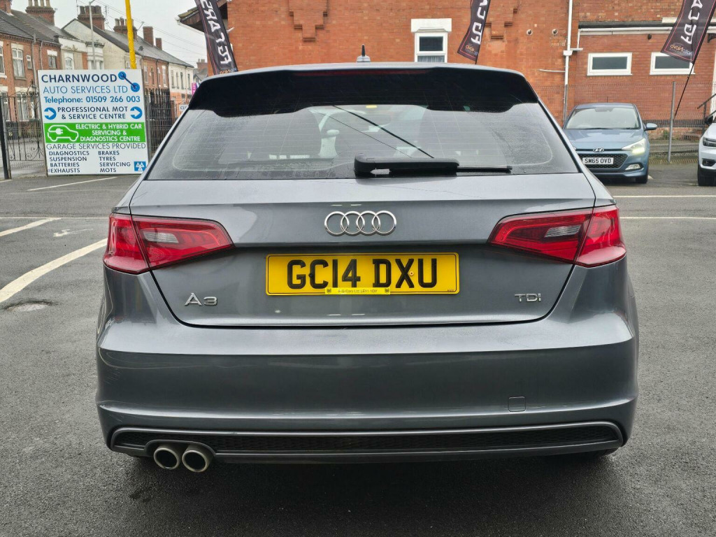 This 2014 Audi A3 2.0 TDI S line Sportback Euro 6 (s/s) 5dr Hatchback is currently available for £8,978 in Loughborough with Diesel engine and Manual gearbox. For more information or to arrange a viewing, click here to send us an email using form below.