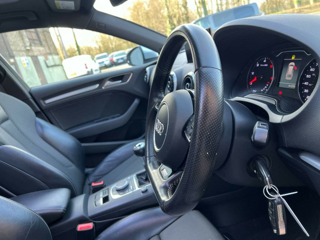 Here at A&A Auto Sales just arrived in stock we have in excellent condition a Audi A3 2.0 S Line Sportback Euro 6. We are FCA regulated and offer competitive finance packages, do not hesitate to contact us if you would like to explore the option. All our vehicles come with 6 months comprehensive premium warranty which is extendable for up to 3 years. with 3 previous owners, Mileage at 74715 warranted miles, 12 months MOT upon purchase. The Audi A3 comes with full service history with service book provided. The vehicle comes with 2 keys. The buyer will be supplied with the V5 registration document, service records, MOT certificate and a HPI clear certificate too.This 2015 Audi A3 TDI S line boasts exceptionally low mileage for its age, having covered just 74715 miles. This particular model features the desirable S line trim and is powered by an efficient 2.0 litre diesel engine, meeting Euro 6 emissions standards. For your convenience, it includes Mobile Telephone Preparation with a Bluetooth interface, allowing for seamless connectivity. The A3 also benefits from Bi-Xenon Plus headlights for enhanced visibility and Dual-Zone Electronic Climate Control to ensure comfort for all occupants.Experience impressive performance with this Audi A3, capable of accelerating from 0 to 62 miles per hour in a brisk 8.6 seconds. This indicates a more responsive driving experience compared to many similar vehicles. Furthermore, the generous boot space offers practicality for everyday needs and longer journeys, making it a versatile choice for various lifestyles.. 12V Power Socket - Centre Console, 12V Power Socket - Rear, 18in Alloy Wheels - 5-Parallel Spoke Design Partly Polished, ABS - Anti-Lock Braking System, AMI - Audi Music Interface, ASR - Anti Slip Regulation, Active Bonnet, Adaptive Brake Lights, Air Vent Sleeves - Aluminium Look, Airbags - Driver, Airbags - Drivers Knee, Airbags - Front Passenger, Airbags - Front Side, Airbags - Head Level Side For Front and Rear, Alarm - Thatcham Category 1, Aluminium Interior Elements, Anti Theft Locking Wheel Bolts, Audi Drive Select, Car Jack, Chrome-Plated Exhaust Tailpipe Trim, Cloth Headlining in Black, Coat Hooks - B Pillar - Both Sides, Colour Drivers Information System - DIS, Cup Holders - Rear x2, Cup Holders - x2 in Centre Console, DAB Digital Radio, Daytime Running Lights, Display Screen Colour - 5.8in, Door Mirrors - Body Coloured with Integrated LED Indicators, Door Mirrors - Electrically Adjustable and Heated, Door Sill Trims with S Line Logo, Dual-Zone Electronic Climate Control, EBD - Electronic Brakeforce Distribution, EDL - Electronic Differential Lock, ESP - Electronic Stability Programme, Electric Windows - Front and Rear, Electromechanical Parking Brake, Electromechanical Power Steering, Exhaust Tailpipe - Twin, First Aid Kit, Fog Lights - High Gloss Black Surrounds, Front Centre Armrest, Front Fog Lights, Front Passenger Airbag Deactivation Switch, Front Sports Seats, Front and Rear Floor Mats, Gear Knob - Perforated Leather, Headlights - Automatic Dynamic Range Control, Headlights - Bi-Xenon Plus, Headlights Washers, Heated Rear Windscreen, Heated Windscreen Washer Jets, Height Adjustable Boot Floor, Hydraulic Brake Assist, ISOFIX Child Seat Mounting for Front Passenger and Rear Outer Seats, Illuminated Vanity Mirrors, Inlays - Matt Brushed Aluminium, Interior Lighting, LED Daytime Running Lights, LED Rear Indicators, LED Rear Lights, Luggage Compartment - Lashing Points x4, Luggage Compartment - Side Net, MMI Radio, Mobile Telephone Preparation - Bluetooth Interface, Model and Engine Technology Badges at Rear, Multi Collision Brake Assist, Preparation for SD Card-Based Navigation System, Radiator Grille - High Gloss Black, Rear Parcel Shelf Removable, Remote Central Locking with 2 Fold Away Keys, Rest Recommendation System, S Line Badges on Front Wings, S Line Body Styling, S Line Design Front and Rear Bumpers Side Grilles and Dffusers in Platinum Grey, S line Design Front Bumper-Rear Diffuser-Side Sills and Roof Spoiler, SDHC Card Reader x2, Seat Belt Reminder for All Seats, Seats - Convenience Entry - Enhanced Front Folding Function, Seats - Front Height Adjustment, Seats - Split Folding Rear - 60-40, Secondary Collision Brake Assist, Smoking Package, Space Saver Spare Wheel, Speakers x8, Sport Suspension, Steering Wheel - Height and Reach Adjustable, Steering Wheel - Multi-function, Steering Wheel - Multifunction - Flat Bottomed, Storage Compartment Under Rear Seat, Storage Compartments in the Door Side Trims-Centre Console-Under Front Passenger Seat, Storage Net in Front Passenger Footwell and Front Seat Backrests, Storage and Luggage Package, Sun Visors - with Covered Vanity Mirrors, Tool Kit, Tyre Pressure Monitoring System, USB Connection, Voice Control - Navigation, Warning Triangle, Washer Fluid Level Indicator, Window Surrounds - Aluminium, Satellite Navigation System - SD Card Based, Audi Parking System Rear with Acoustic Indicators, Rear Side Airbags, Audi Hill Hold Assist, 18in Alloy Wheels - 10-Spoke Design Titanium Matt, Door Mirrors - Heated-Electrically Adjustable-Folding, Panoramic Glass Sunroof, Biathlon Cloth-Pearl Nappa Leather - S Line Embossing - Black with Silver Stitching. Full service history