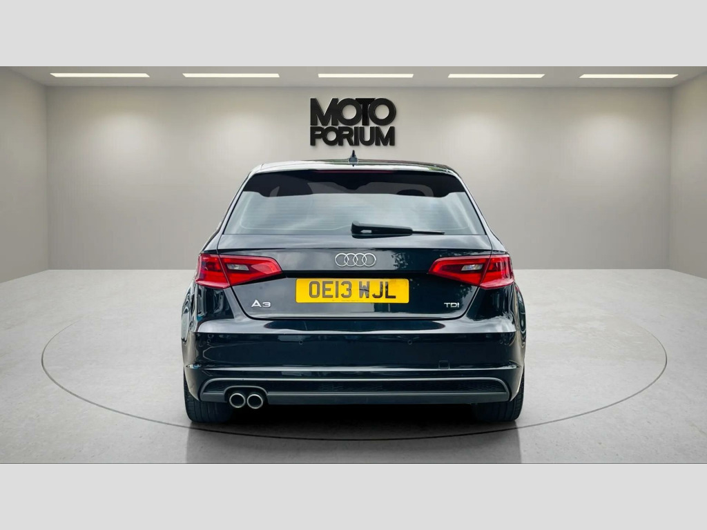 2013 Audi A3 TDI S Line Automatic Diesel Hatchback in sleek black – only 17,700 miles from new, making it the lowest mileage example in the UK for its age and model! Powerful 2.0 TDI engine (Euro 5, 119g/km CO₂) paired with smooth automatic gearbox. Top-spec S Line trim delivers sport styling, premium interior, and superb driving dynamics. 5 doors, 5 seats, 1 previous keeper, service history, MOT valid until May 2026.This rare, ultra-low mileage car has been cherished and is in outstanding condition for its year – a true collector’s find or perfect daily driver with years of life ahead.Finance available – making ownership even easier. Part exchange welcome. V5 present, HPI clear. First to see will buy – don’t miss this exceptional Audi A3 S Line AutoReserve Now, to secure for 5 days with just a £49 fully refundable fee. You can easily do this on our website, https://www.motoporium.com/, or over the phone. This fee guarantees the car is held exclusively for you, giving you peace of mind while we discuss the valuation of your current vehicle, arrange a test drive, or help you with Zero Deposit financing. If you change your mind at any stage, no problem—your £49 is fully refundable, no questions asked. There's absolutely no obligation to buy—it has to be the perfect match for you | We've made the buying process straightforward and convenient. The entire part exchanging or financing process—from applying for finance to signing the agreement—can be completed online at your convenience. We offer flexible finance options with competitive APRs and zero deposit plans to fit your budget.DISCLAIMER: The mileage of the car might increase slightly due to the test drives. We have completed a DVSA database check to establish whether any manufacturers' recall is pending on this vehicle. If a recall has been identified, it is referred to in the vehicle description and we will use our best endeavors to ensure that the recall is completed before the time of sale. If there is no reference to a manufacturer's recall, it is based on the information supplied by the DVSA at the. 12V Power Socket - Centre Console, 12V Power Socket - Rear, 12V Power Socket - Rear x2, 18in Alloy Wheels - 5-Parallel Spoke Design Partly Polished, ABS - Anti-Lock Braking System, AMI - Audi Music Interface, ASR - Anti Slip Regulation, Active Bonnet, Adaptive Brake Lights, Air Vent Sleeves - Aluminium Look, Airbags - Driver, Airbags - Drivers Knee, Airbags - Front Passenger, Airbags - Front Side, Airbags - Head Level Side For Front and Rear, Alarm - Thatcham Category 1, Aluminium Interior Elements, Anti Theft Locking Wheel Bolts, Audi Drive Select, Car Jack, Child Locks - Manual, Chrome-Plated Exhaust Tailpipe Trim, Cloth Headlining in Black, Coat Hooks - B Pillar - Both Sides, Colour Drivers Information System - DIS, Display Screen Colour - 5.8in, Door Mirrors - Body Coloured with Integrated LED Indicators, Door Mirrors - Electrically Adjustable and Heated, Door Sill Trims with S Line Logo, Dual-Zone Electronic Climate Control, EBD - Electronic Brakeforce Distribution, EDL - Electronic Differential Lock, ESP - Electronic Stability Programme, Electric Windows - Front and Rear, Electromechanical Parking Brake, Electromechanical Power Steering, Exhaust Tailpipe - Chrome Plated, Exhaust Tailpipe - Twin, First Aid Kit, Fog Lights - High Gloss Black Surrounds, Front Centre Armrest, Front Fog Lights, Front Passenger Airbag Deactivation Switch, Front Sports Seats, Front and Rear Floor Mats, Gear Knob - Perforated Leather, Headlights - Automatic Dynamic Range Control, Headlights - Bi-Xenon Plus, Headlights Washers, Heated Rear Windscreen, Heated Windscreen Washer Jets, Height Adjustable Boot Floor, Hydraulic Brake Assist, ISOFIX Child Seat Mounting for Front Passenger and Rear Outer Seats, Illuminated Vanity Mirrors, Inlays - Matt Brushed Aluminium, Interior Lighting, LED Daytime Running Lights, LED Rear Lights, Luggage Compartment - Lashing Points x4, Luggage Compartment - Side Net, MMI Radio, Mobile Telephone Preparation - Bluetooth Interface, Multi Collision Brake Assist, Preparation for SD Card-Based Navigation System, Radiator Grille - High Gloss Black, Rear Parcel Shelf Removable, Remote Central Locking with 2 Fold Away Keys, Rest Recommendation System, Roof Spoiler -  Painted in Body Colour with Aerodynamic Inserts in High-Gloss Black at the Side, S Line Badges on Wings, S Line Body Styling, SD Card Reader, Seat Belt Reminder for All Seats, Seats - Convenience Entry - Enhanced Front Folding Function, Seats - Front Height Adjustment, Seats - Split Folding Rear - 60-40, Secondary Collision Brake Assist, Smoking Package, Space Saver Spare Wheel, Speakers x8, Spoiler - Roof, Sport Suspension, Steering Wheel - 3-Spoke Leather-Flat Bottomed-Shift Paddles, Steering Wheel - Height and Reach Adjustable, Steering Wheel - Multi-function, Storage Compartment Under Rear Seat, Storage Compartments in the Door Side Trims-Centre Console-Under Front Passenger Seat, Storage Net in Front Passenger Footwell and Front Seat Backrests, Storage and Luggage Package, Sun Visors - with Covered Vanity Mirrors, Tool Kit, Voice Control - Navigation, Warning Triangle, Washer Fluid Level Indicator, Window Surrounds - Aluminium.