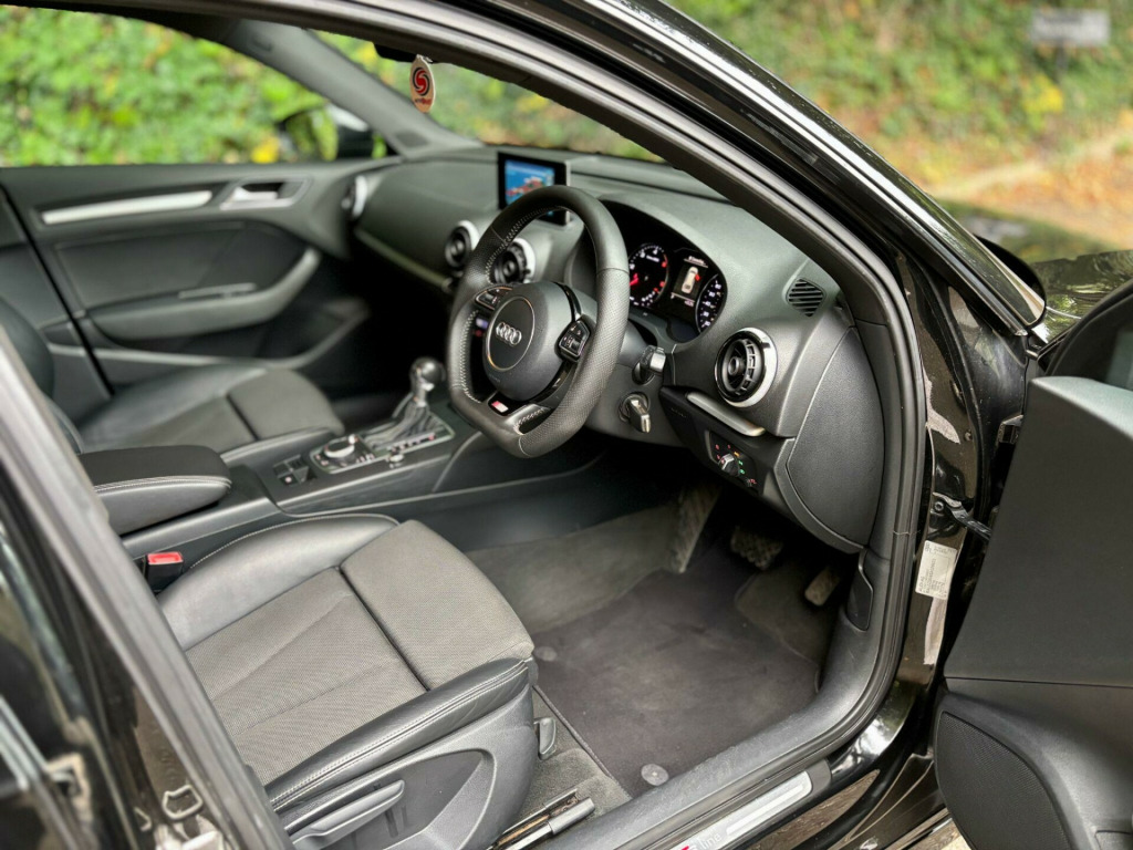 In Superb Condition throughout this AUDI A3 2.0L AUTOMATIC boasts high spec features such as Reversing Sensors, Satellite Navigation, Bluetooth Compatibility, Cruise Control and Speed Limiter, Automatic Paddle Shifters on Steering Wheel, Steering Wheel Controls, and Many More! New Cambelt Kit Included In Sale Price!Full Service Included In Sale Price!MOT (with No Advisories) Included In Sale Price!Supplied with Cambelt Kit, Full Service, 12 months MOT (with no advisories) and a fully comprehensive 3 month no quibble Warranty. Highly Rated Awards for 4 years For Our Customer Service by Autotrader. Finance available. Full T&Cs available. Full dealer facilities. In house fully comprehensive warranty covering everything from a bulb to an engine. All work completed in our large on-site garage and MOT station. Family run business established in 1991. AA and Trading Standards approved garage. Friendly no pressure environment. Delivery possible. HPI clear. Please visit our website for more information.. 12V Power Socket - Centre Console, 12V Power Socket - Rear, 18in Alloy Wheels - 5-Parallel Spoke Design Partly Polished, ABS - Anti-Lock Braking System, AMI - Audi Music Interface, ASR - Anti Slip Regulation, Active Bonnet, Adaptive Brake Lights, Air Vent Sleeves - Aluminium Look, Airbags - Driver, Airbags - Drivers Knee, Airbags - Front Passenger, Airbags - Front Side, Airbags - Head Level Side For Front and Rear, Alarm - Thatcham Category 1, Aluminium Interior Elements, Anti Theft Locking Wheel Bolts, Audi Drive Select, Car Jack, Chrome-Plated Exhaust Tailpipe Trim, Cloth Headlining in Black, Coat Hooks - B Pillar - Both Sides, Colour Drivers Information System - DIS, Cup Holders - Rear x2, Cup Holders - x2 in Centre Console, DAB Digital Radio, Daytime Running Lights, Display Screen Colour - 5.8in, Door Mirrors - Body Coloured with Integrated LED Indicators, Door Mirrors - Electrically Adjustable and Heated, Door Sill Trims with S Line Logo, Dual-Zone Electronic Climate Control, EBD - Electronic Brakeforce Distribution, EDL - Electronic Differential Lock, ESP - Electronic Stability Programme, Electric Windows - Front and Rear, Electromechanical Parking Brake, Electromechanical Power Steering, Exhaust Tailpipe - Twin, First Aid Kit, Fog Lights - High Gloss Black Surrounds, Front Centre Armrest, Front Fog Lights, Front Passenger Airbag Deactivation Switch, Front Sports Seats, Front and Rear Floor Mats, Gear Knob - Perforated Leather, Headlights - Automatic Dynamic Range Control, Headlights - Bi-Xenon Plus, Headlights Washers, Heated Rear Windscreen, Heated Windscreen Washer Jets, Height Adjustable Boot Floor, Hydraulic Brake Assist, ISOFIX Child Seat Mounting for Front Passenger and Rear Outer Seats, Illuminated Vanity Mirrors, Inlays - Matt Brushed Aluminium, Interior Lighting, LED Daytime Running Lights, LED Rear Indicators, LED Rear Lights, Luggage Compartment - Lashing Points x4, Luggage Compartment - Side Net, MMI Radio, Mobile Telephone Preparation - Bluetooth Interface, Model and Engine Technology Badges at Rear, Multi Collision Brake Assist, Preparation for SD Card-Based Navigation System, Radiator Grille - High Gloss Black, Rear Parcel Shelf Removable, Remote Central Locking with 2 Fold Away Keys, Rest Recommendation System, S Line Badges on Front Wings, S Line Body Styling, S Line Design Front and Rear Bumpers Side Grilles and Dffusers in Platinum Grey, S line Design Front Bumper-Rear Diffuser-Side Sills and Roof Spoiler, SDHC Card Reader x2, Seat Belt Reminder for All Seats, Seats - Convenience Entry - Enhanced Front Folding Function, Seats - Front Height Adjustment, Seats - Split Folding Rear - 60-40, Secondary Collision Brake Assist, Smoking Package, Space Saver Spare Wheel, Speakers x8, Sport Suspension, Steering Wheel - 3-Spoke Leather-Flat Bottomed-Shift Paddles, Steering Wheel - Height and Reach Adjustable, Steering Wheel - Multi-function, Storage Compartment Under Rear Seat, Storage Compartments in the Door Side Trims-Centre Console-Under Front Passenger Seat, Storage Net in Front Passenger Footwell and Front Seat Backrests, Storage and Luggage Package, Sun Visors - with Covered Vanity Mirrors, Tool Kit, Tyre Pressure Monitoring System, USB Connection, Voice Control - Navigation, Warning Triangle, Washer Fluid Level Indicator, Window Surrounds - Aluminium, Cruise Control, Black Styling Package, Fine Nappa Leather - S Line Embossing - Black with Silver Stitching, Suspension - S Line, 18in Alloy Wheels - 10-Spoke Design, Audi Sound System. Part service history